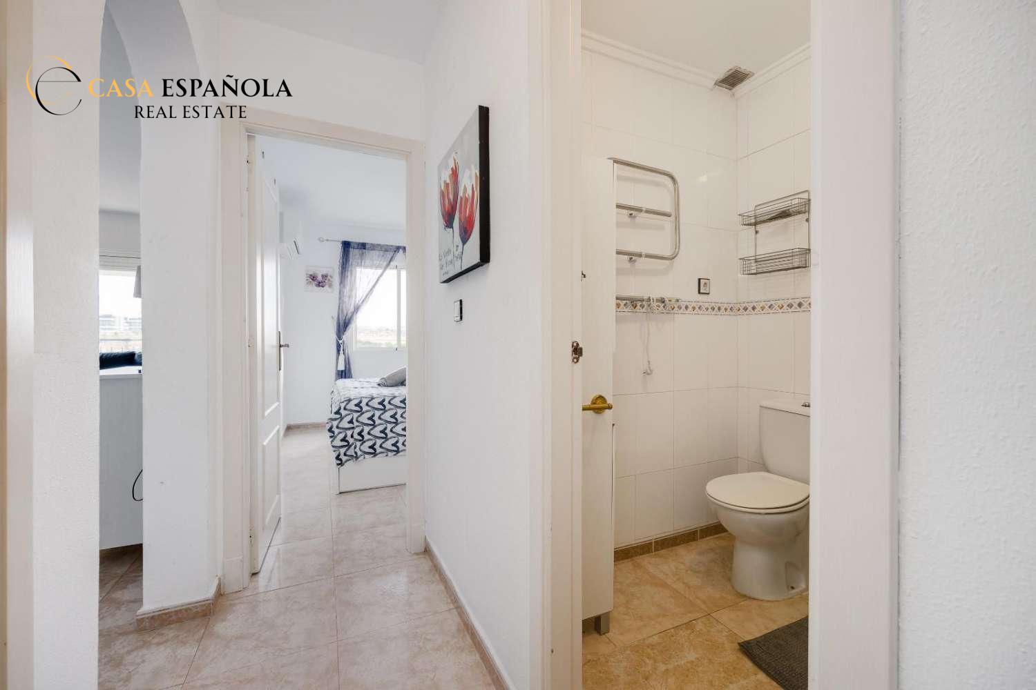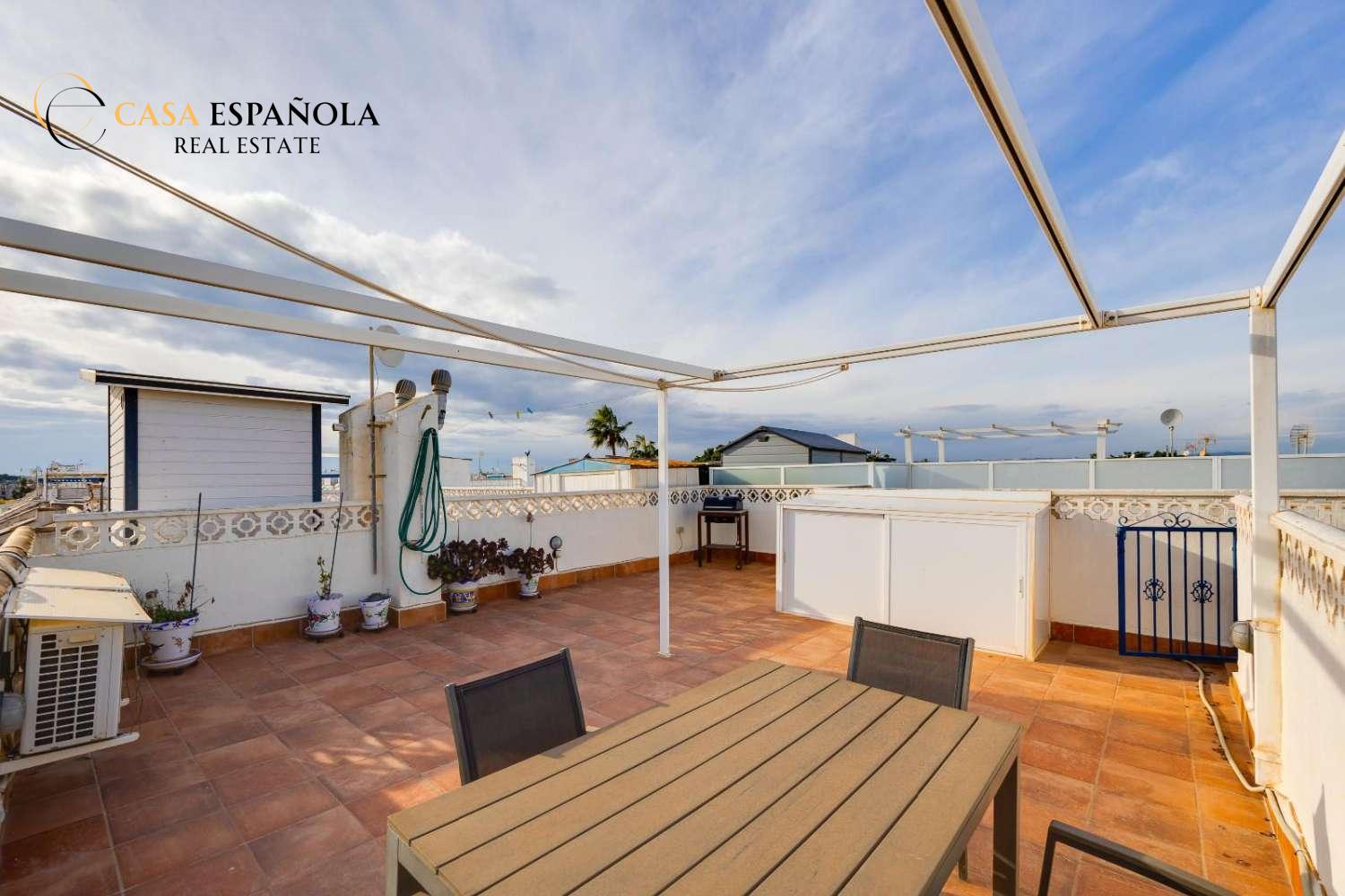Okouzlující byt v nejvyšším patře se nachází v Jardín del Mar, nedaleko Carrefouru a nákupního centra Habaneras, jedné z nejvyhledávanějších oblastí Torrevieji díky svému klidu a vynikající dostupnosti veškeré občanské vybavenosti. Nemovitost nabízí tři ložnice, světlý obývací pokoj s jídelnou, plně vybavenou kuchyň, koupelnu a terasu ideální pro každodenní bydlení. Jeho hlavním lákadlem je prostorné soukromé solárium, všestranný prostor, kde si můžete užívat slunce po celý rok a vytvořit si příjemnou relaxační zónu (s grilem nebo dokonce vířivkou), ideální pro relaxaci v soukromí nebo pro setkání s přáteli. Tento byt se nachází v dobře udržované rezidenční čtvrti, v blízkosti supermarketů, parků, veřejné dopravy a jen pár minut od centra města a pláží, a nabízí pohodlí, skvělou polohu a skutečně výjimečný venkovní prostor.