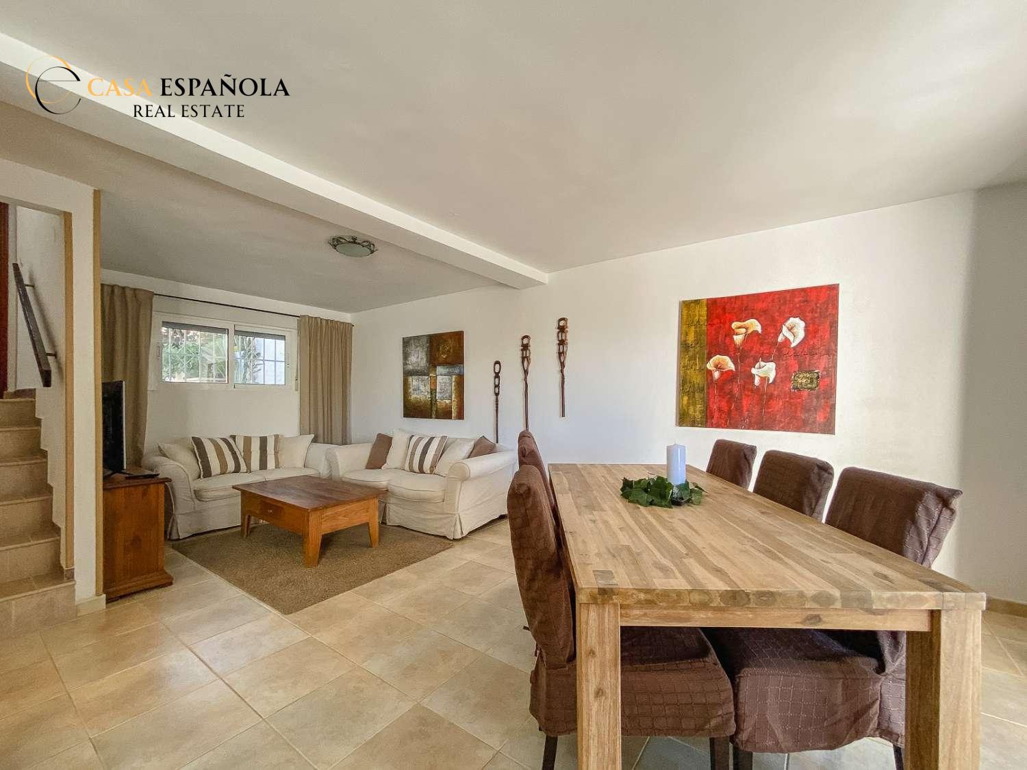S potěšením nabízíme dvoupatrový řadový dům se suterénem a soláriem, který se nachází v oblíbené oblasti Lomas del Mar III. Nemovitost prošla částečnou rekonstrukcí a nabízí několik prostorných teras, které spolu s výhledem na zeleň vytvářejí příjemnou a harmonickou atmosféru. Tento dům se nachází v dobře udržovaném a bezpečném uzavřeném komplexu, ideálním pro ty, kteří hledají pohodlné a relaxační bydlení.