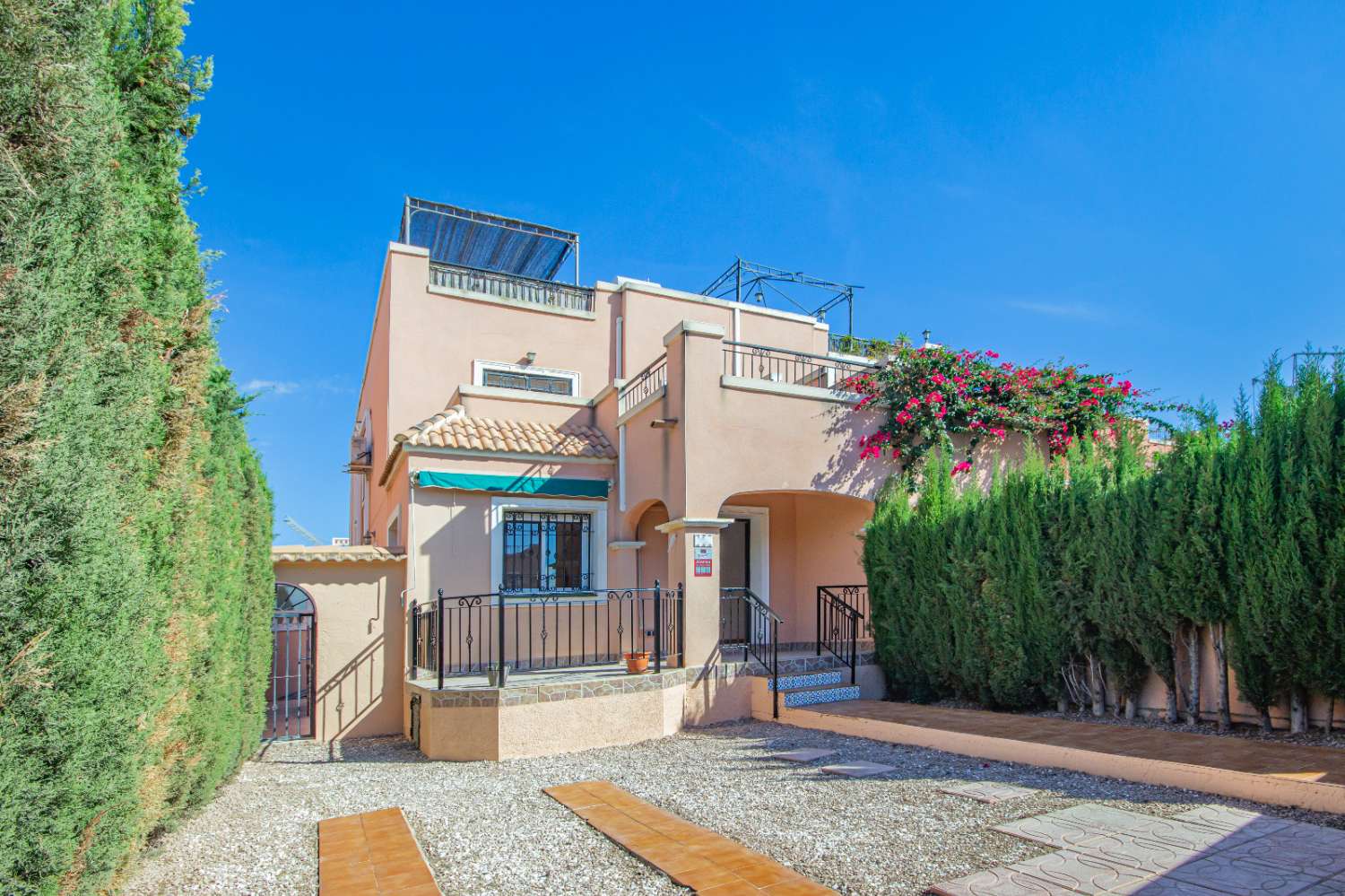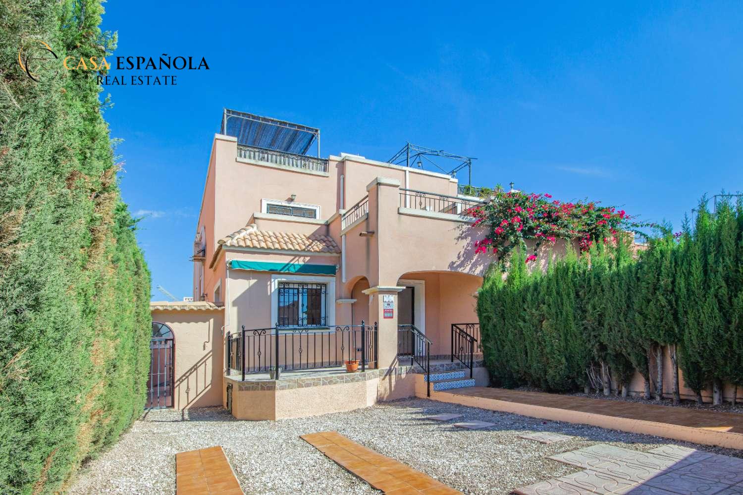 Dvojdomek se zahradou, parkovacím místem, soláriem, suterénem a společným bazénem k prodeji v La Herrada (Los Montesinos, Alicante).