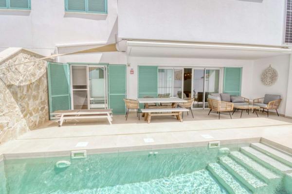 Odtud se dostanete ke klenotu exteriéru: útulné letní kuchyni, bazénu s výhledem na hory a terase ideální pro západy slunce, které jako by zastavily čas.
