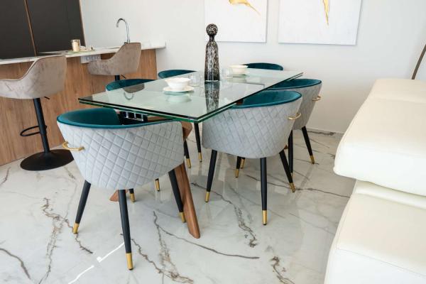 Model Juliet je moderní vila ve tvaru L, kde si můžete vychutnat výhled na váš soukromý bazén z obývacího pokoje s jídelnou a hlavní ložnice. Skládá se z obývacího pokoje s jídelnou, otevřené kuchyně se všemi vestavěnými spotřebiči, 3 ložnic a 2 koupelen, vše na jednom patře.