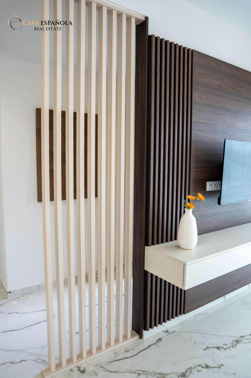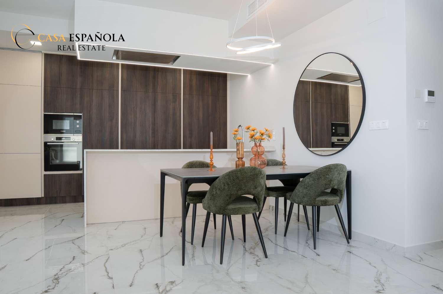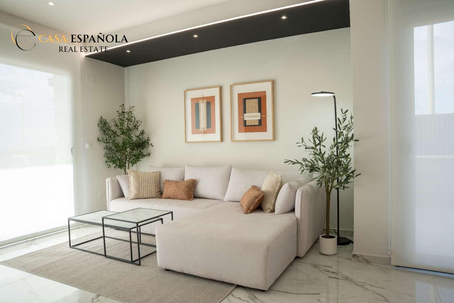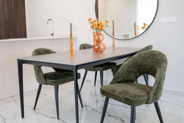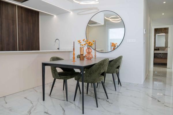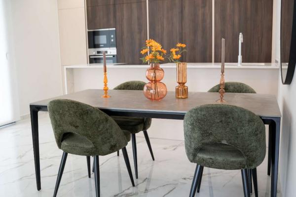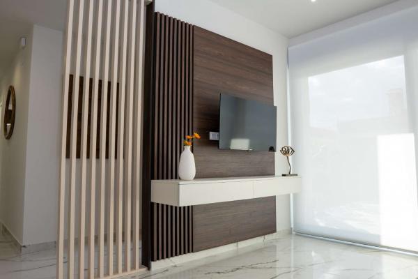 Model Nova je čtvercová vila. Skládá se z obývacího pokoje s jídelnou, otevřené kuchyně se všemi spotřebiči, 3 ložnic a 2 koupelen, vše na jednom patře. Z obývacího pokoje si můžete vychutnat výhled na bazén.