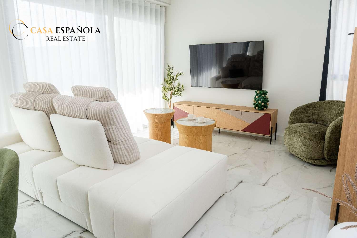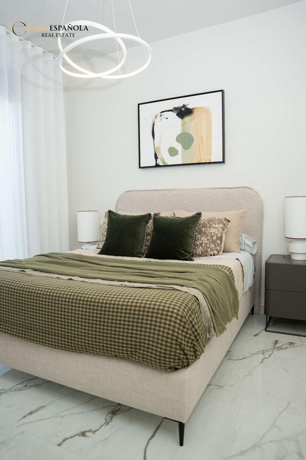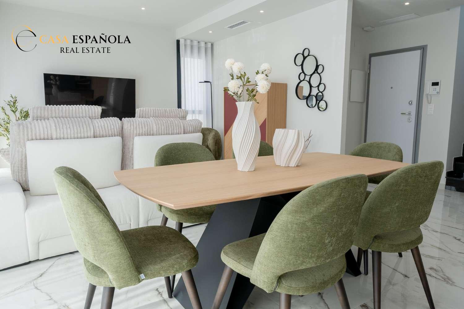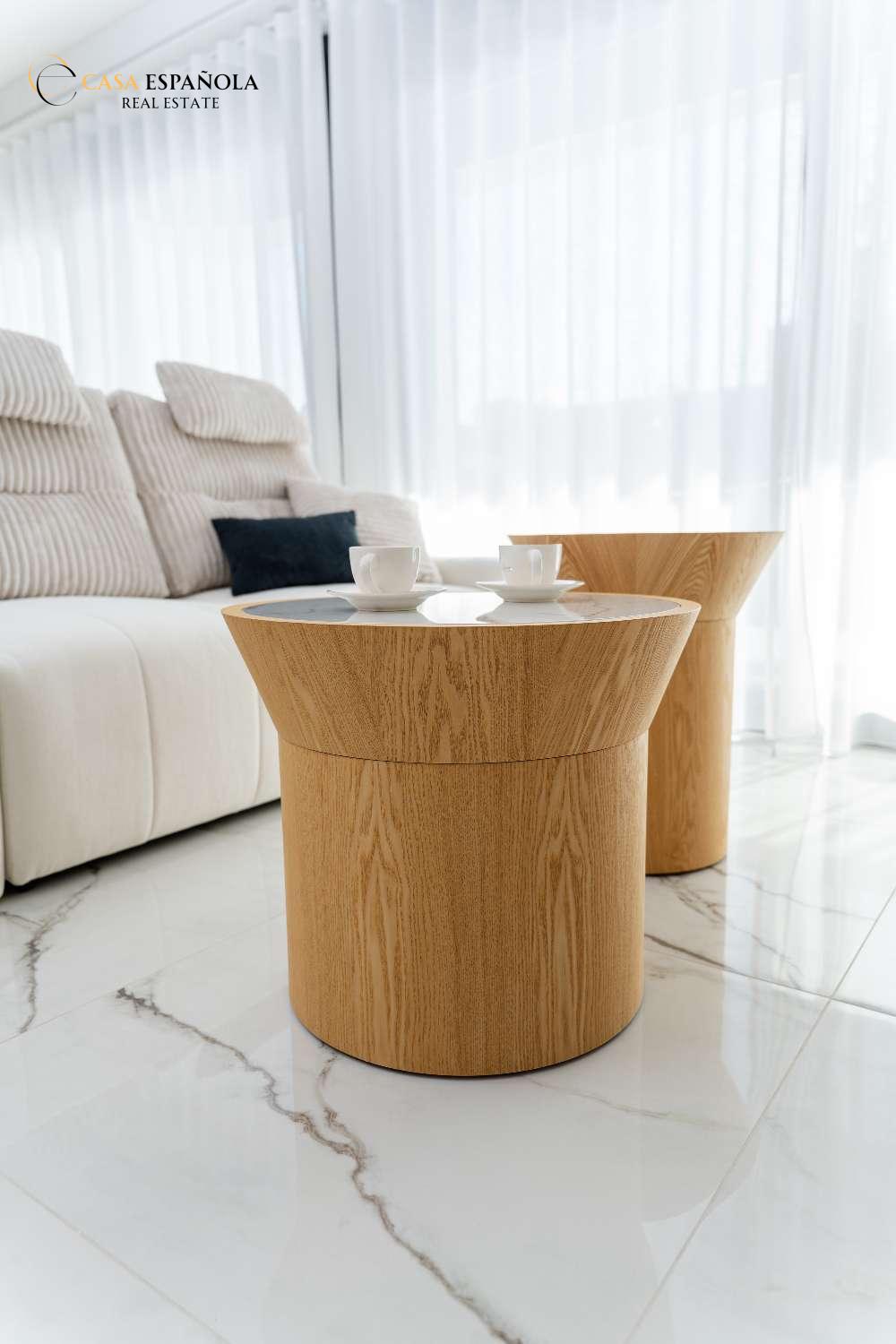 Model Vega nabízí velký obývací pokoj s jídelnou, otevřenou kuchyň se všemi vestavěnými spotřebiči, 3 ložnice a 3 koupelny rozložené na dvou prostorných podlažích s velkým soláriem a upravenými zahradami.