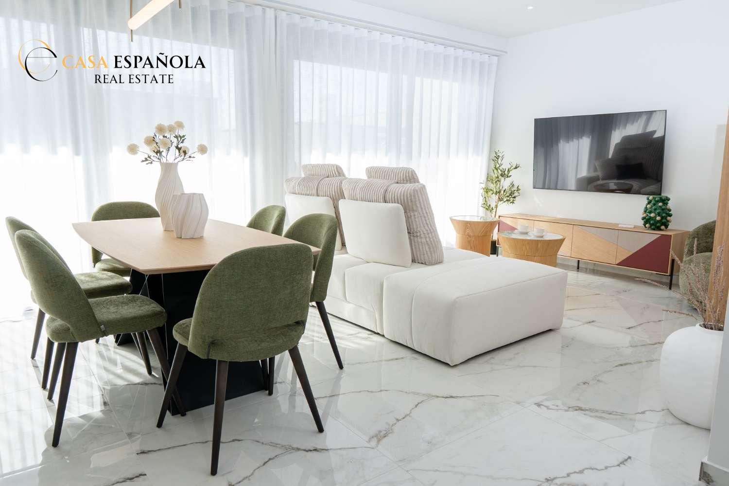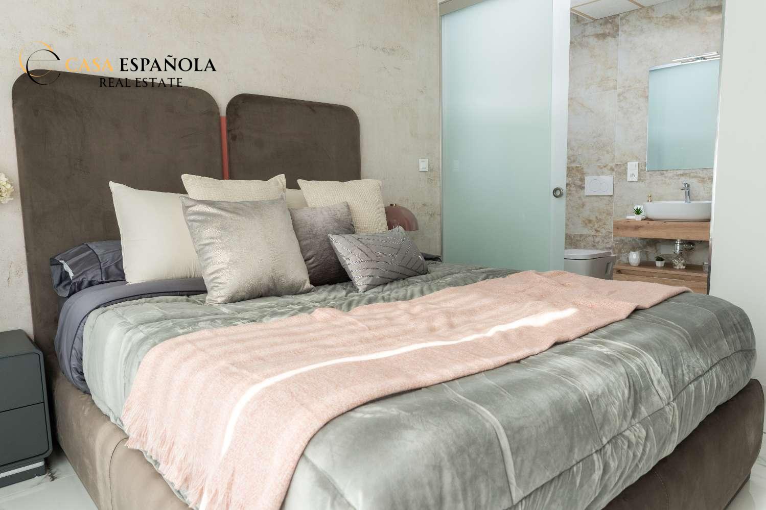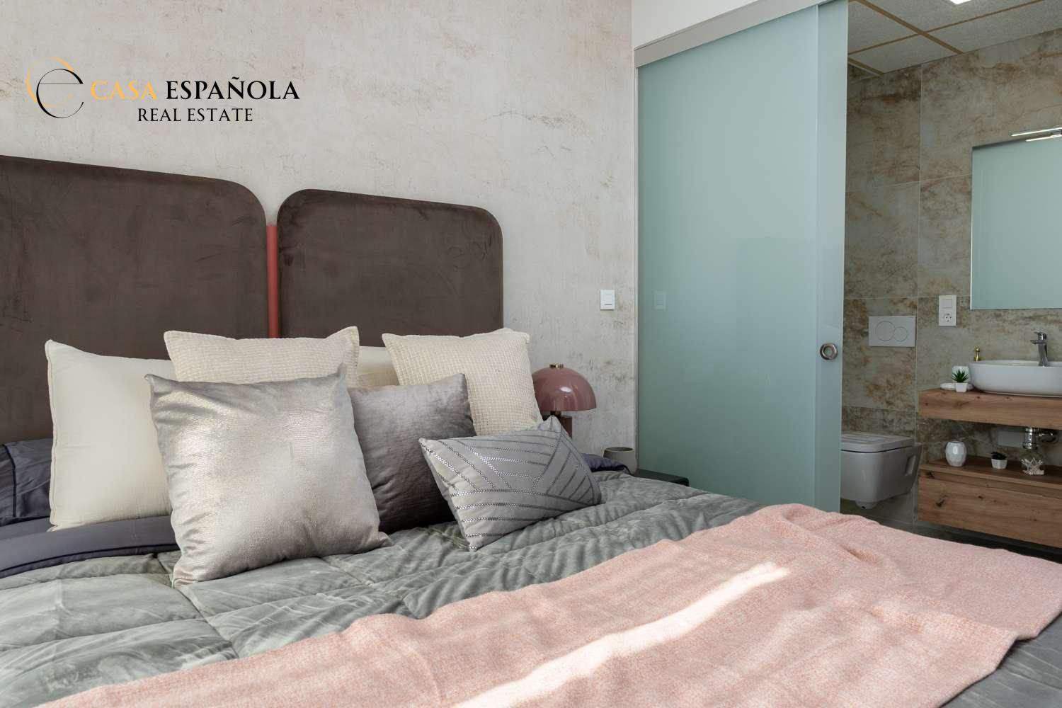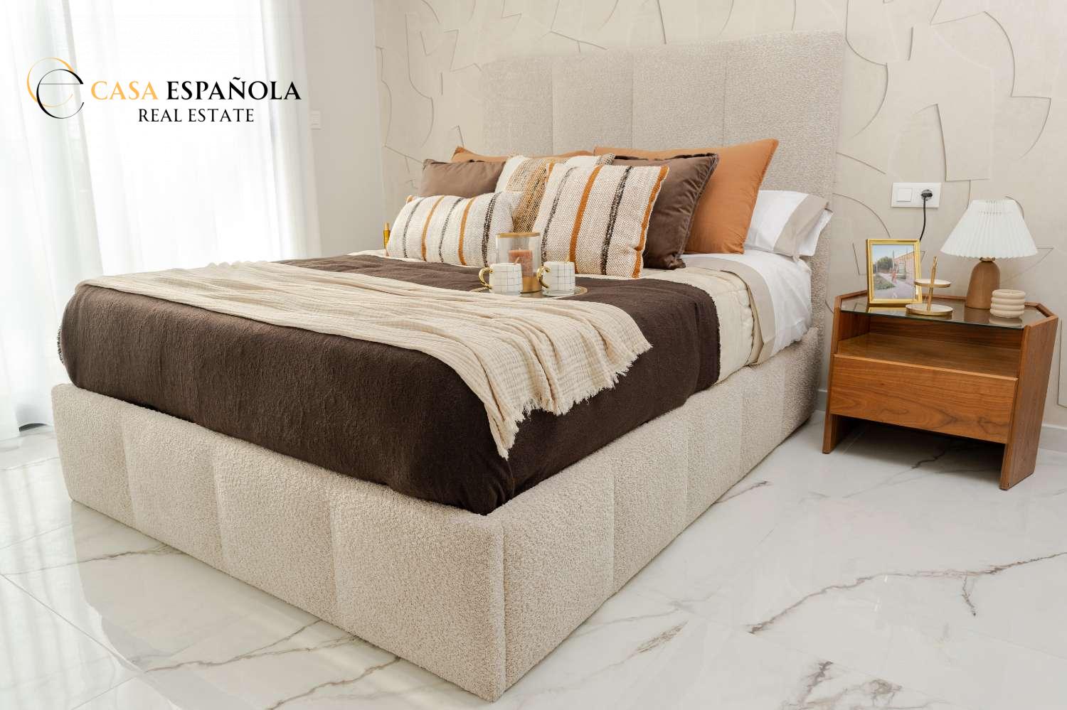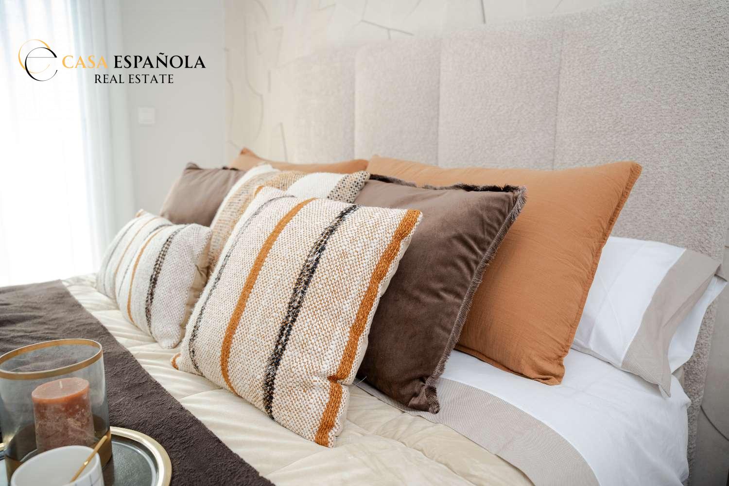 Model Vega nabízí velký obývací pokoj s jídelnou, otevřenou kuchyň se všemi vestavěnými spotřebiči, 3 ložnice a 3 koupelny rozložené na dvou prostorných podlažích s velkým soláriem a upravenými zahradami.