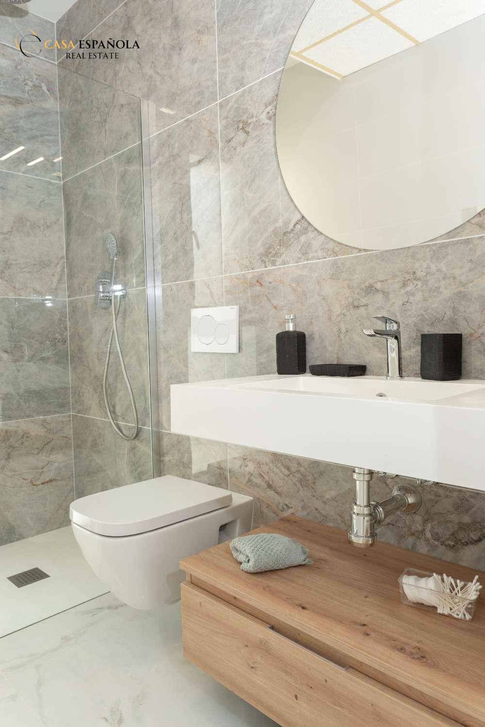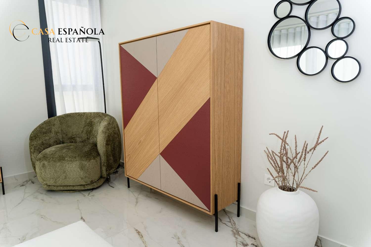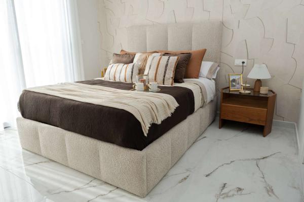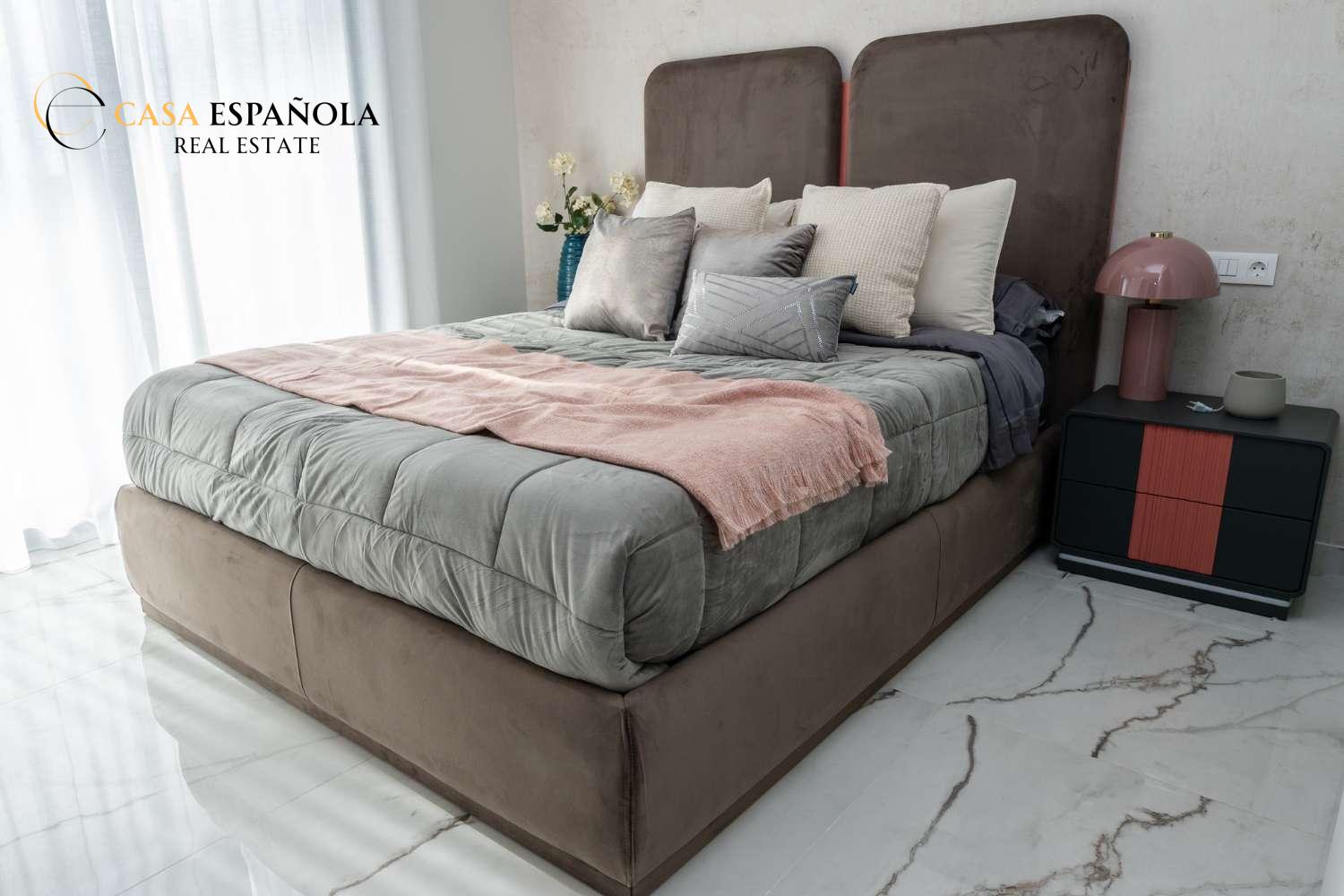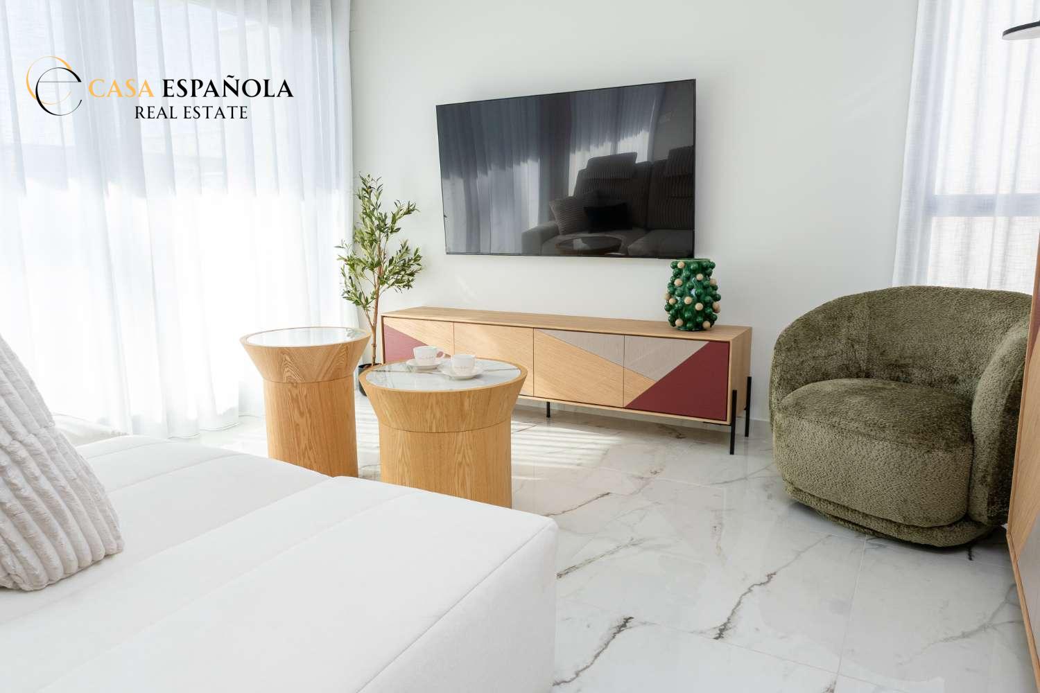 Model Vega nabízí velký obývací pokoj s jídelnou, otevřenou kuchyň se všemi vestavěnými spotřebiči, 3 ložnice a 3 koupelny rozložené na dvou prostorných podlažích s velkým soláriem a upravenými zahradami.