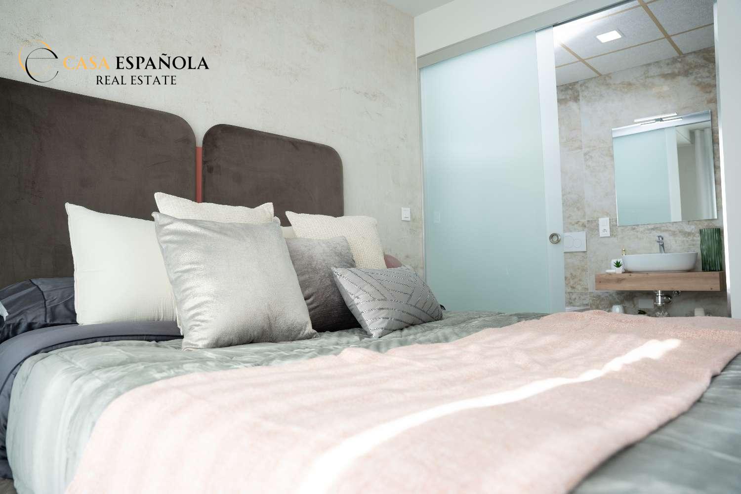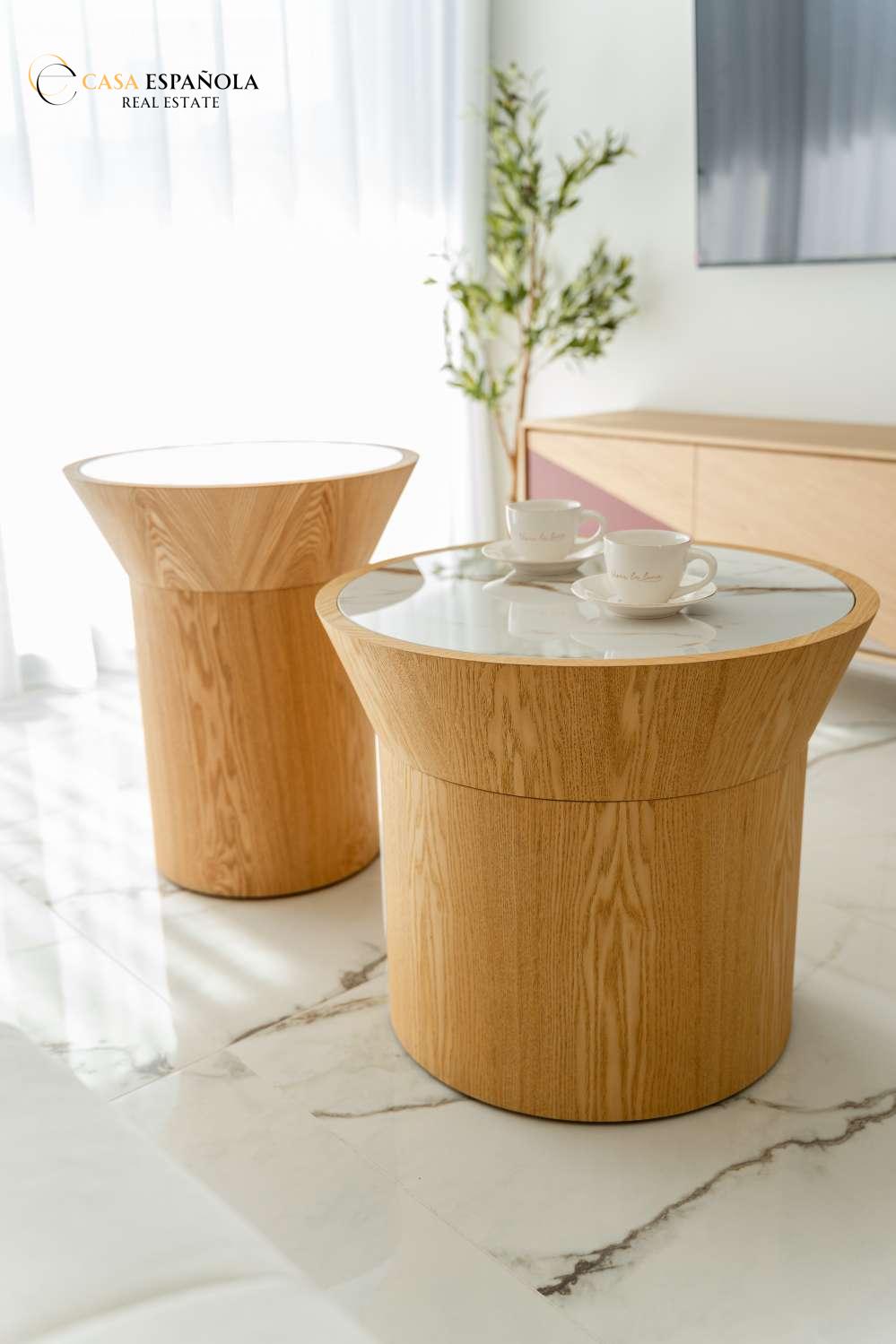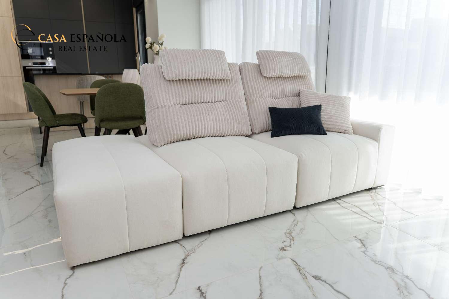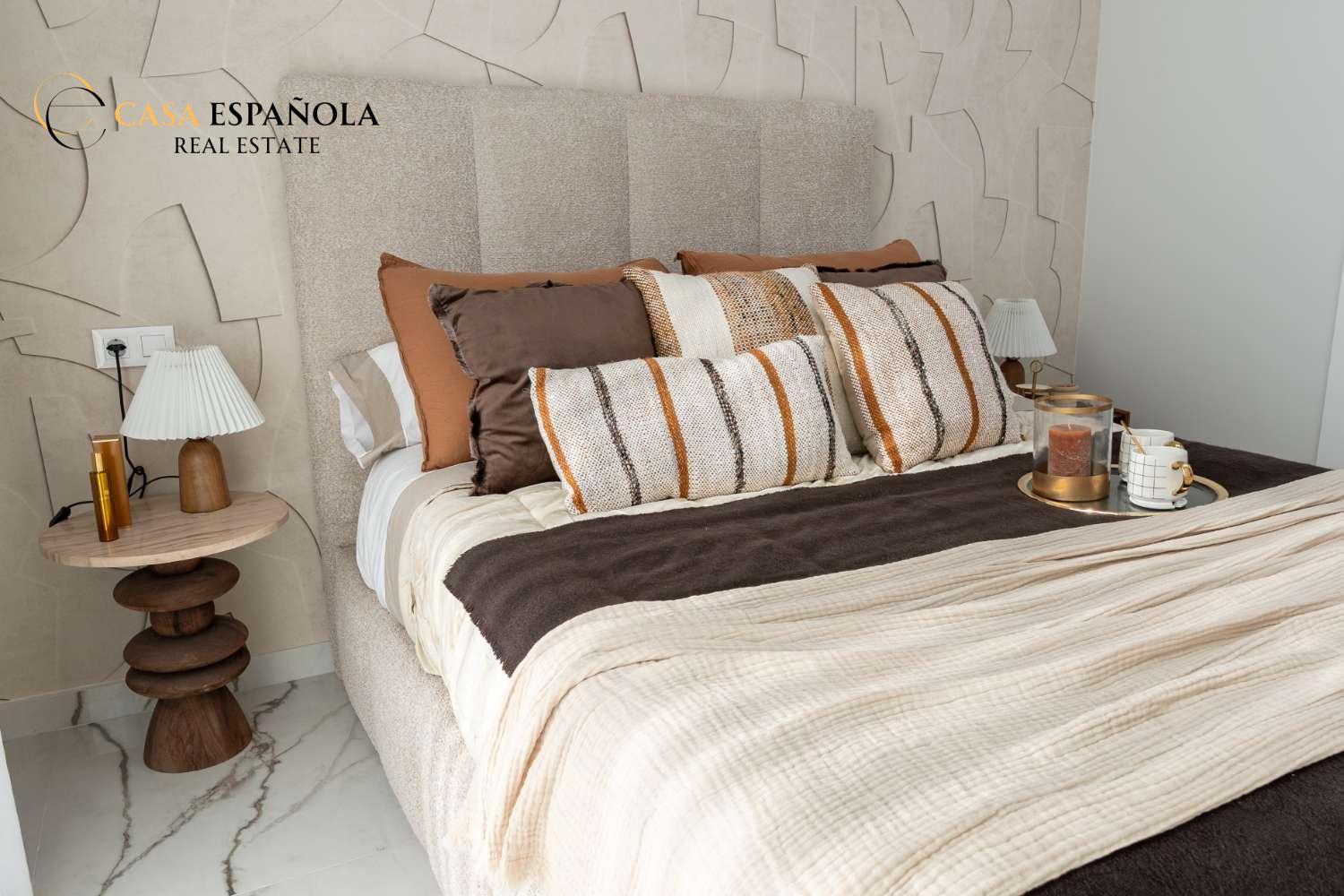 Model Vega nabízí velký obývací pokoj s jídelnou, otevřenou kuchyň se všemi vestavěnými spotřebiči, 3 ložnice a 3 koupelny rozložené na dvou prostorných podlažích s velkým soláriem a upravenými zahradami.