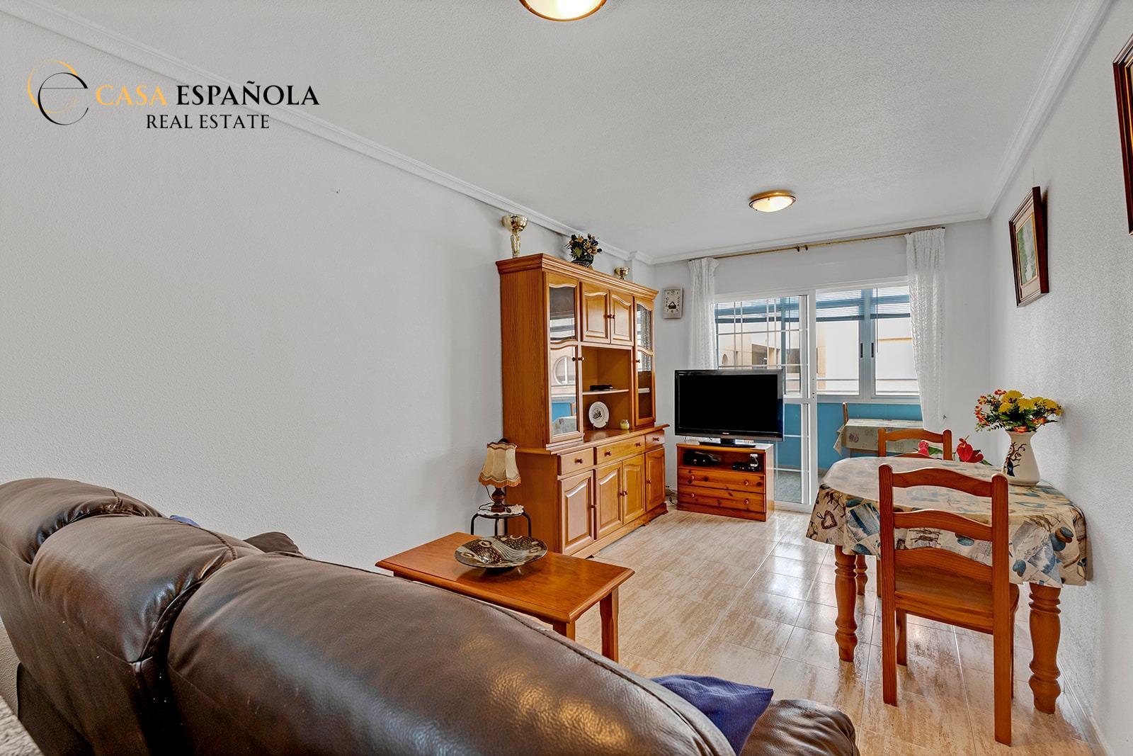 For sale: a charming 2-bedroom, 1-bathroom apartment with an open-plan kitchen, filled with natural light and a smart layout. It features a large terrace of approximately 15 m2 — perfect for outdoor dining, sunbathing, or relaxing with open views.~~Located on Avenida Robleda in the quiet and sought-after San Luis neighborhood, a well-established residential area with all amenities nearby: supermarkets, restaurants, health center, public transport, and just a 10-minute drive from the beautiful beaches of La Mata and Los Locos.~~This property is within a gated community with a communal pool, 24-hour security, and direct access to the La Mata Natural Park — ideal for walking, cycling, or simply enjoying nature.~~Perfect as a permanent residence, holiday home, or investment for vacation rentals thanks to its great location and services.