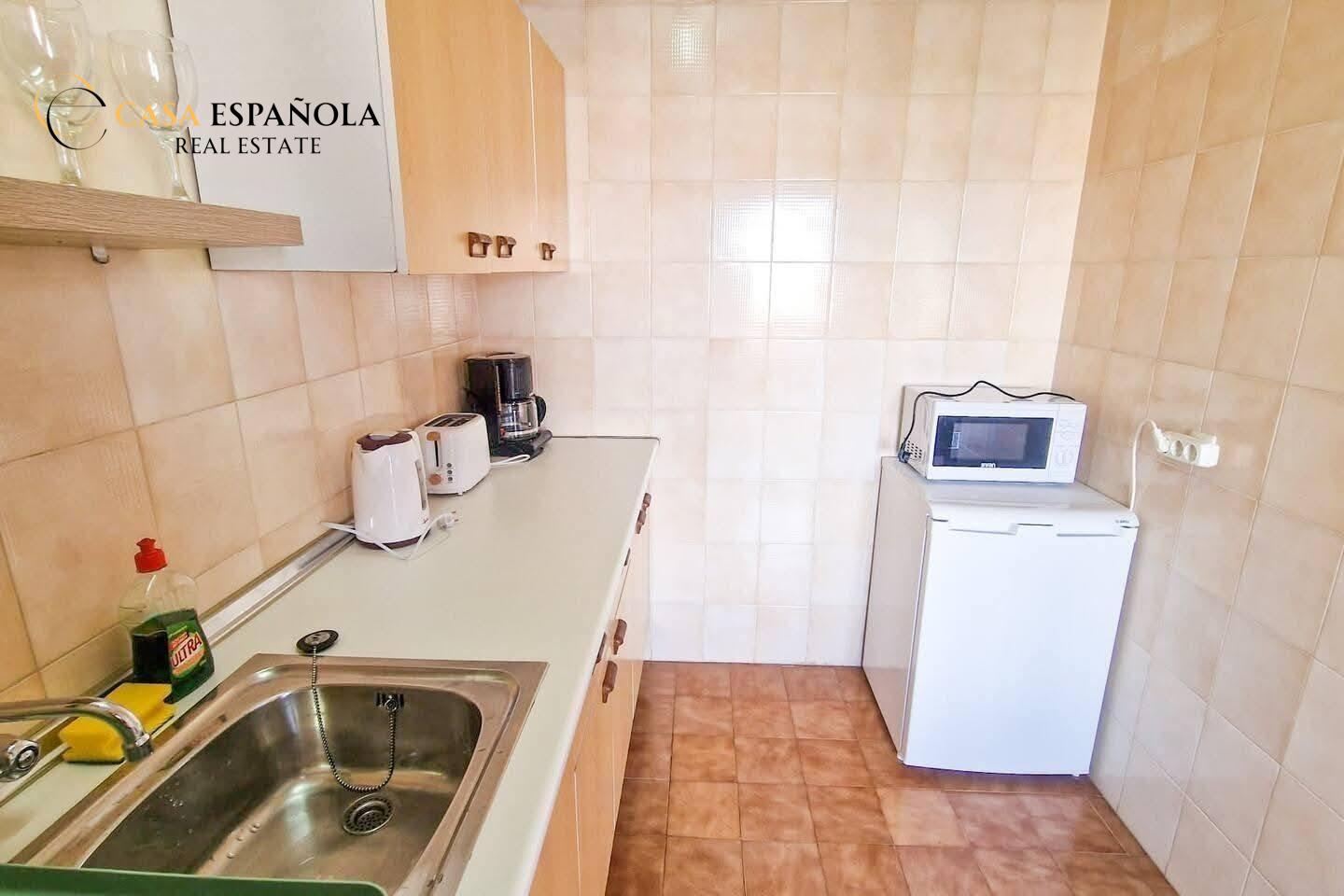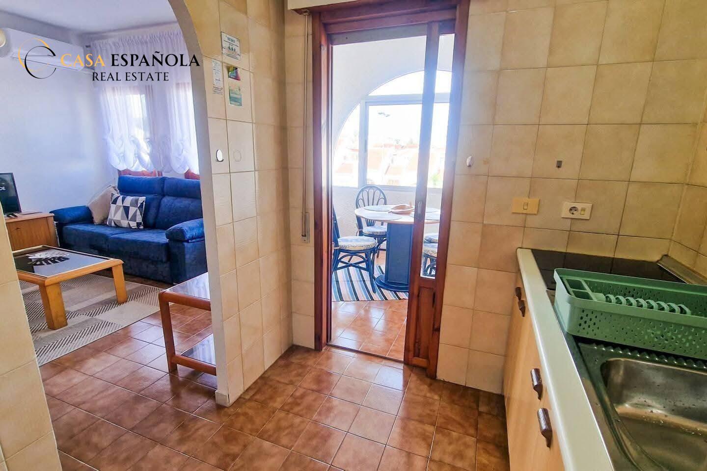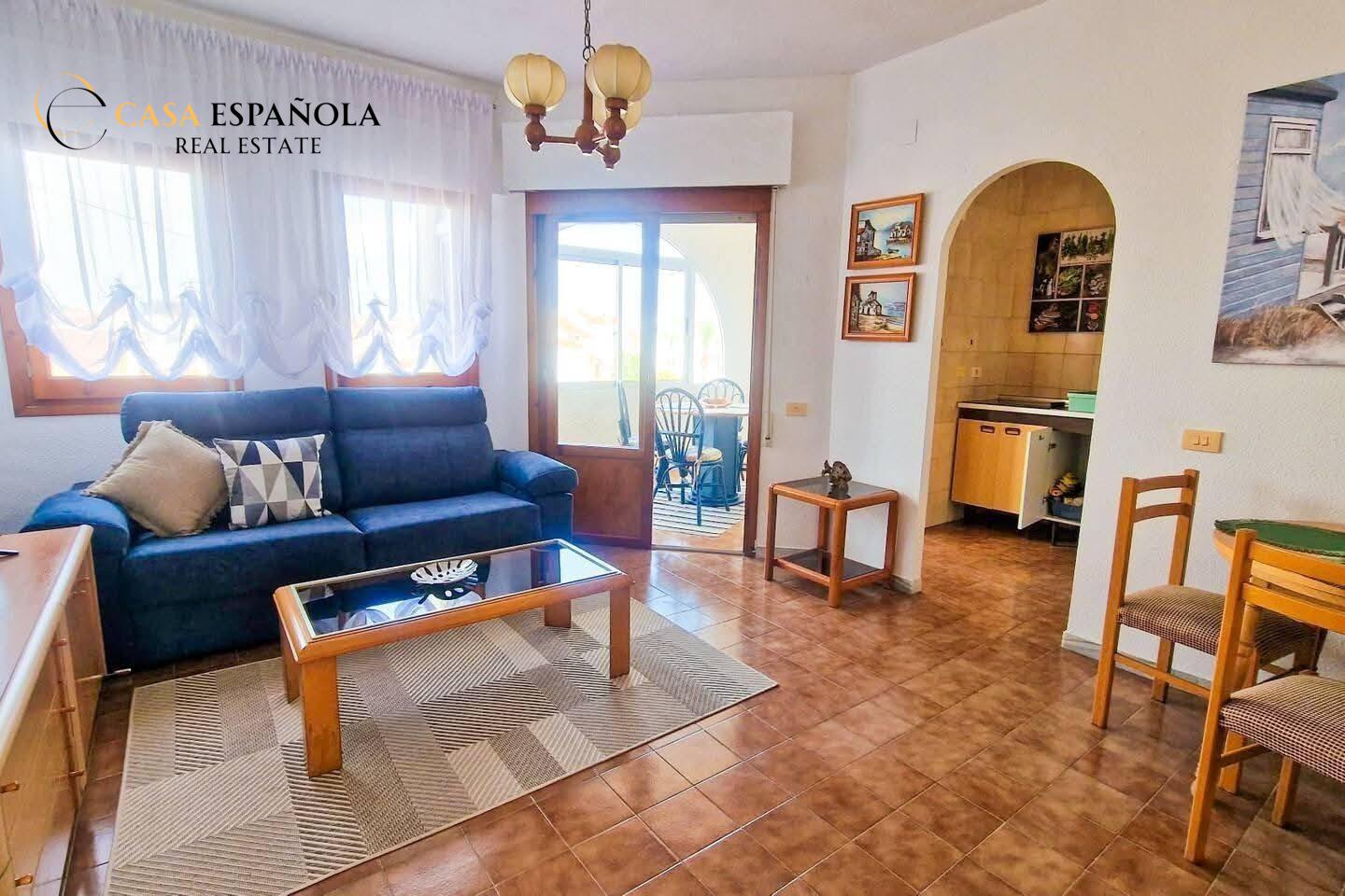 We present this cozy apartment located in the popular Calas Blancas residential area in Torrevieja, perfect for enjoying the Mediterranean lifestyle.
