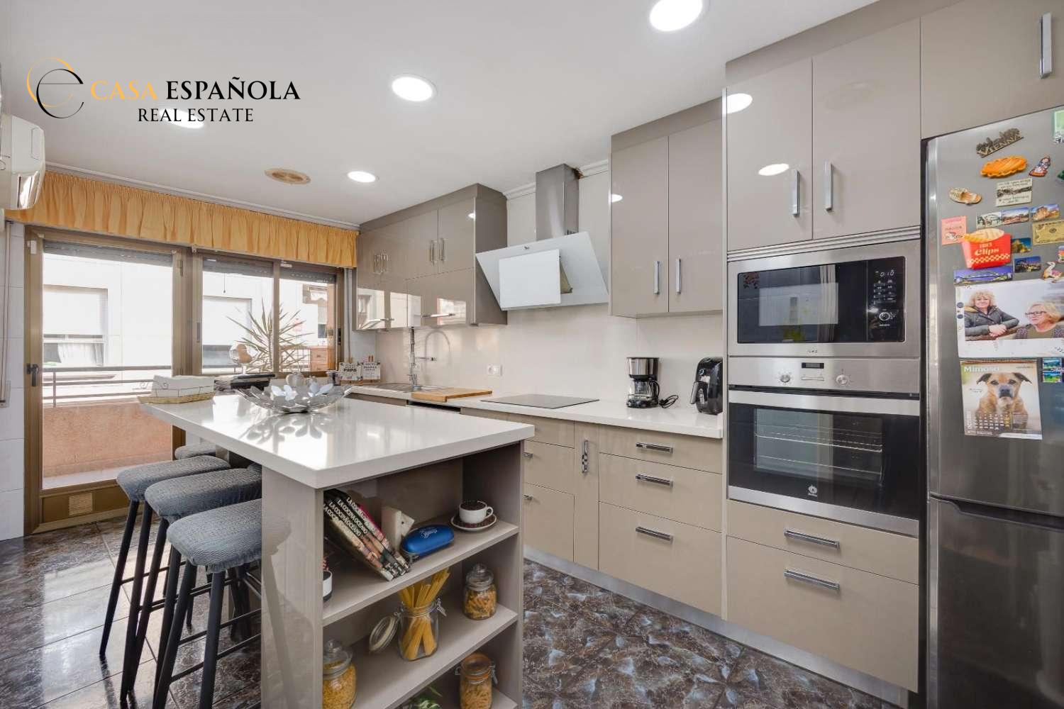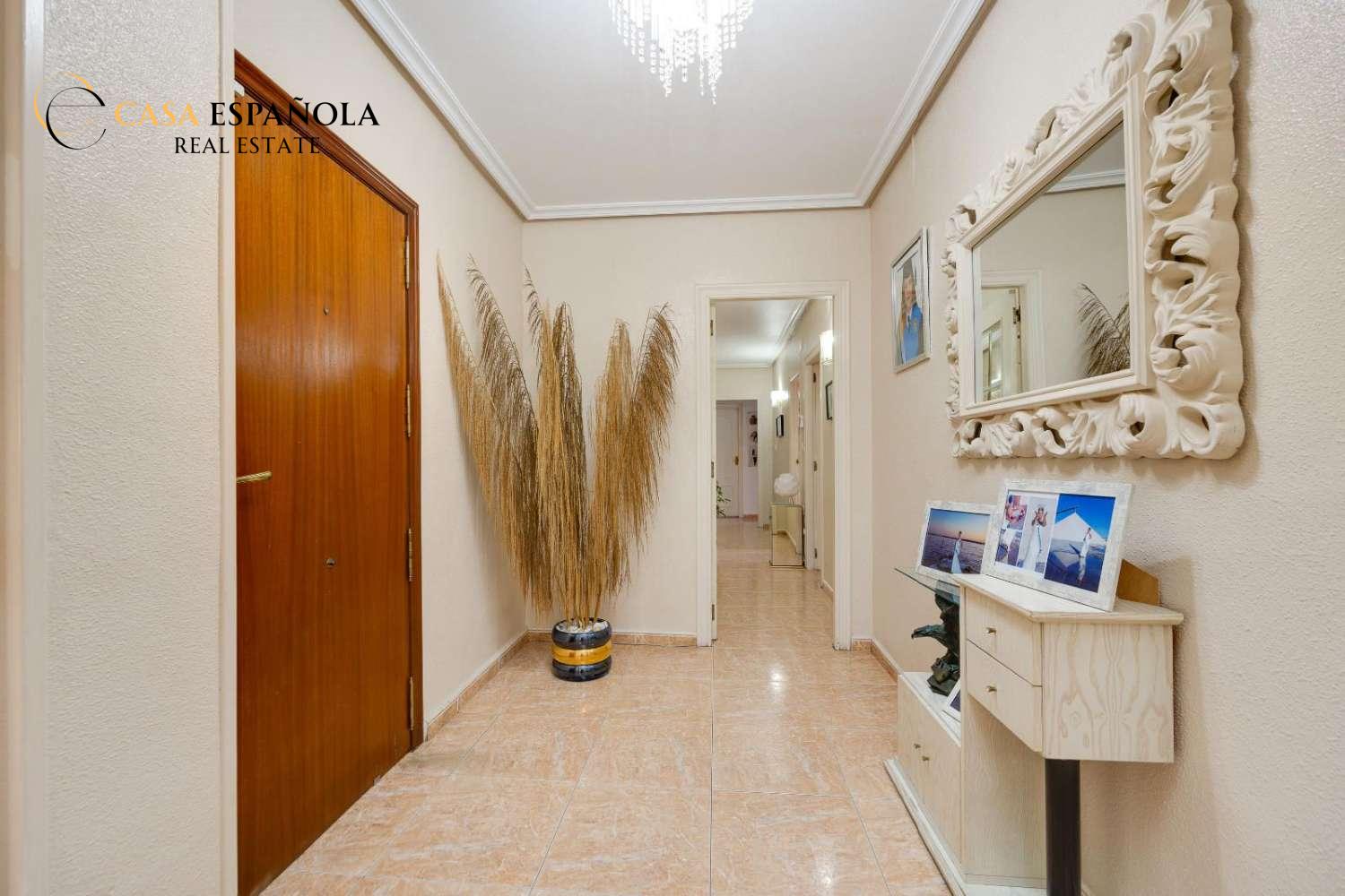 Spacious, centrally located apartment with private solarium in Torrevieja. This fantastic 158 m² apartment is for sale in a central area, just 570 meters from the sea.
