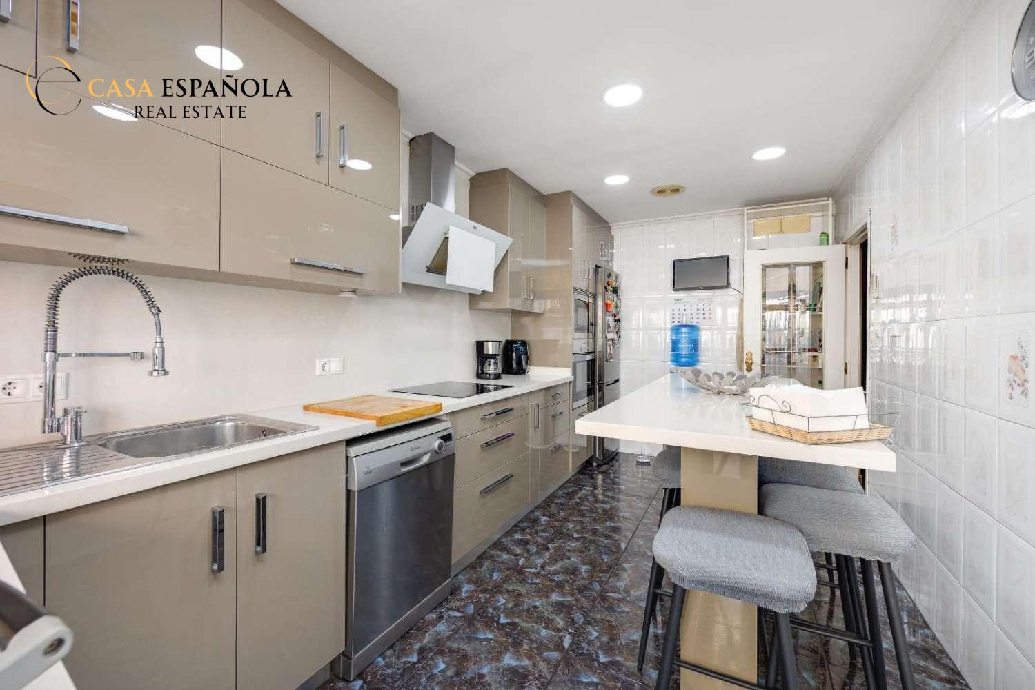 The property features 5 spacious bedrooms, 2 full bathrooms, a fully renovated independent kitchen, three terraces that provide abundant natural light, and a private solarium, perfect for enjoying the Mediterranean climate year-round.