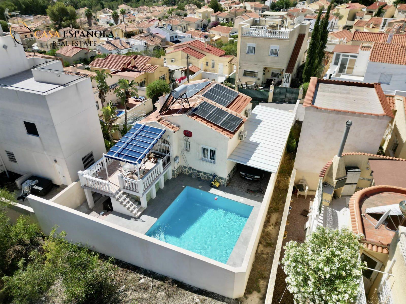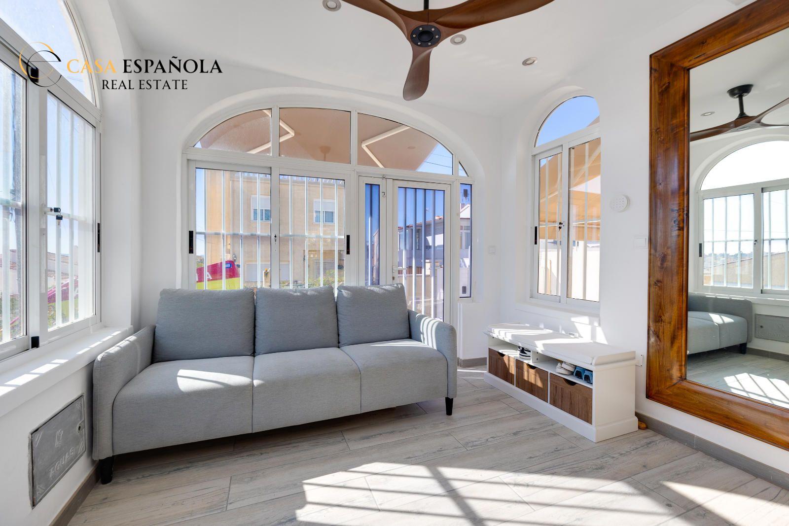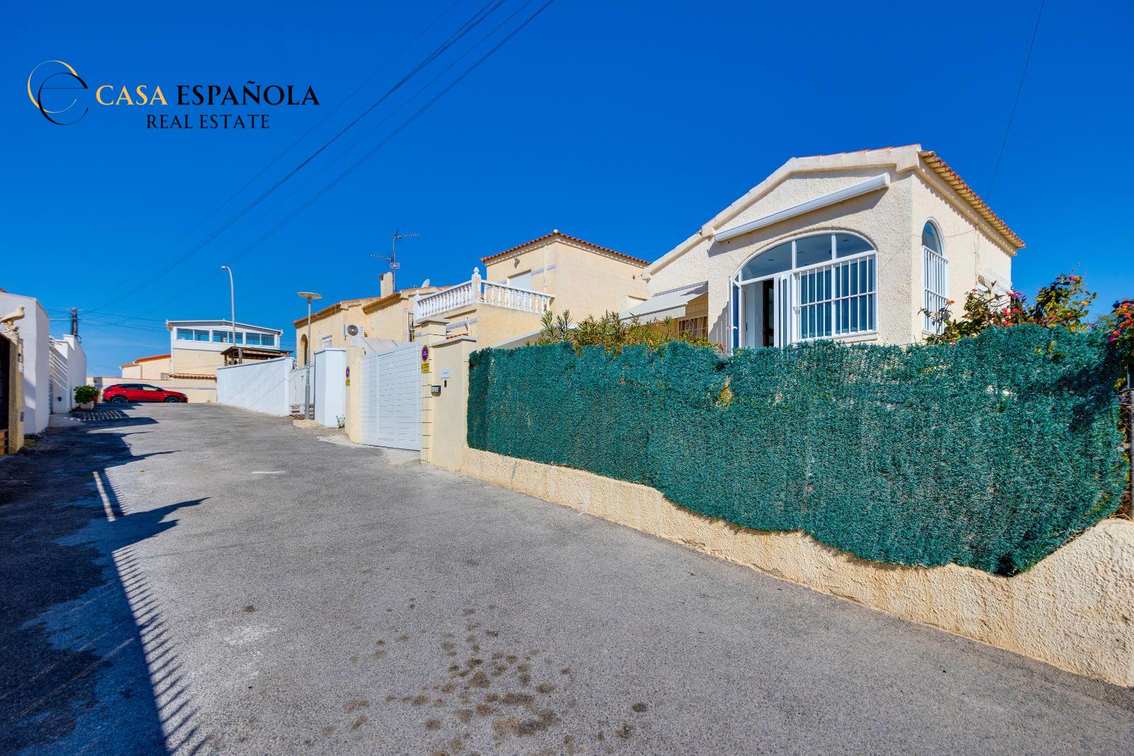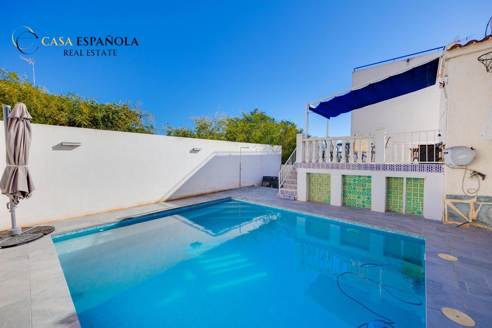 This beautiful detached villa with a private swimming pool is located in the peaceful and highly sought-after La Marina Urbanización on the Costa Blanca.