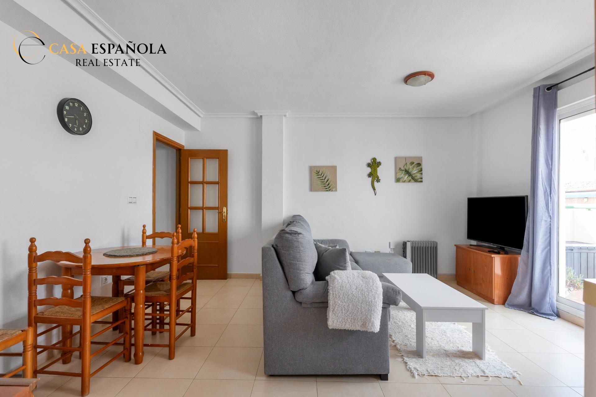 The apartment has a west orientation, providing plenty of natural light and beautiful afternoon sunshine. It offers 2 bedrooms, 1 bathroom and a spacious terrace, perfect for relaxing throughout the year. From the terrace you can also enjoy partial sea views, a highly valued feature in this location.