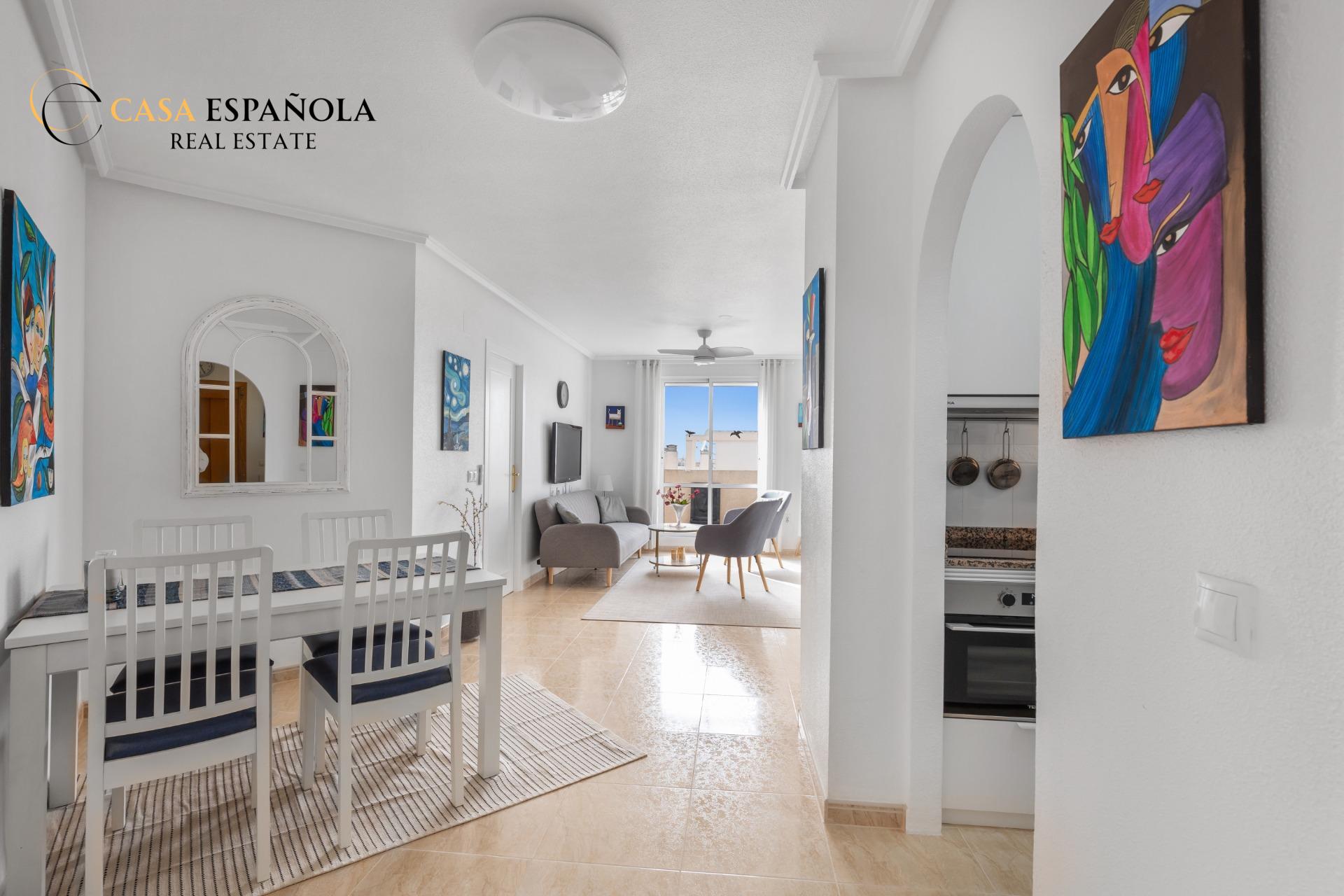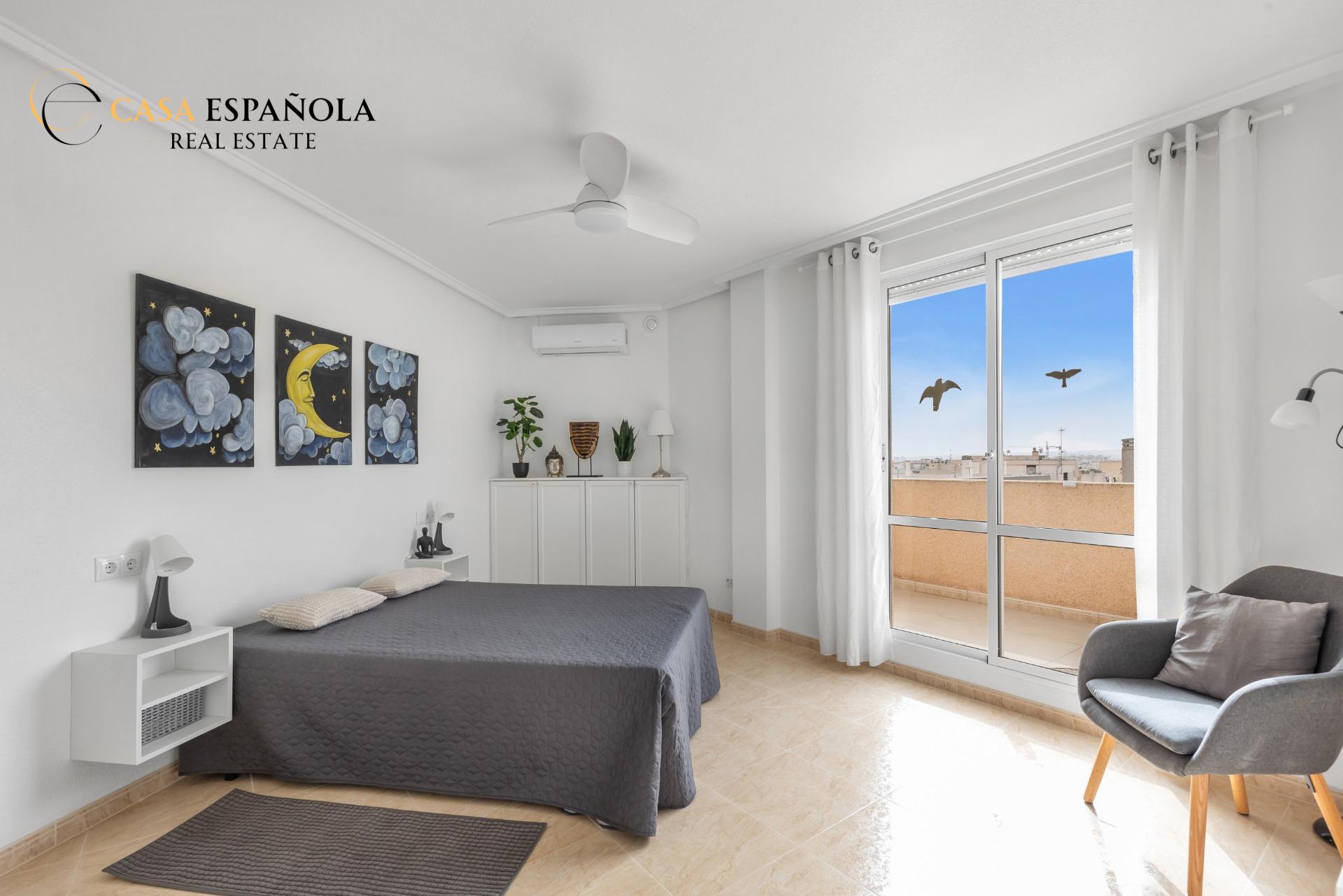 Discover your own Mediterranean oasis under the sun. We present this beautiful semi-renovated penthouse located in the sought-after Santa Gema residential complex in Torrevieja. The property perfectly combines comfort, modern style and an excellent location.