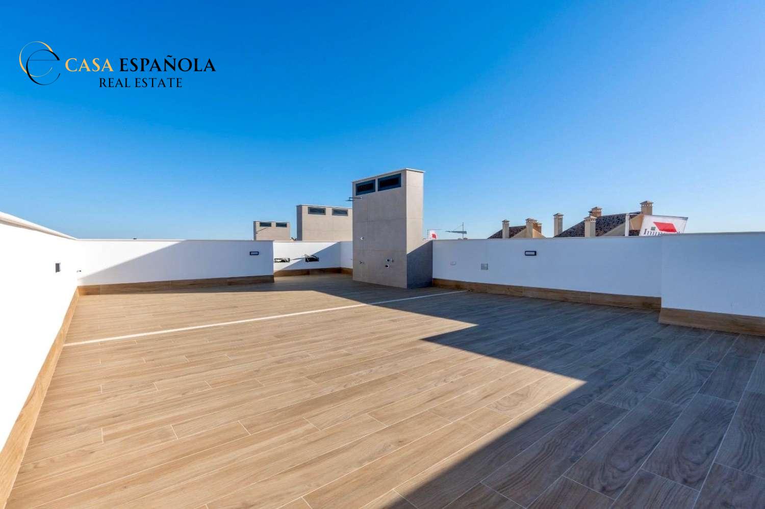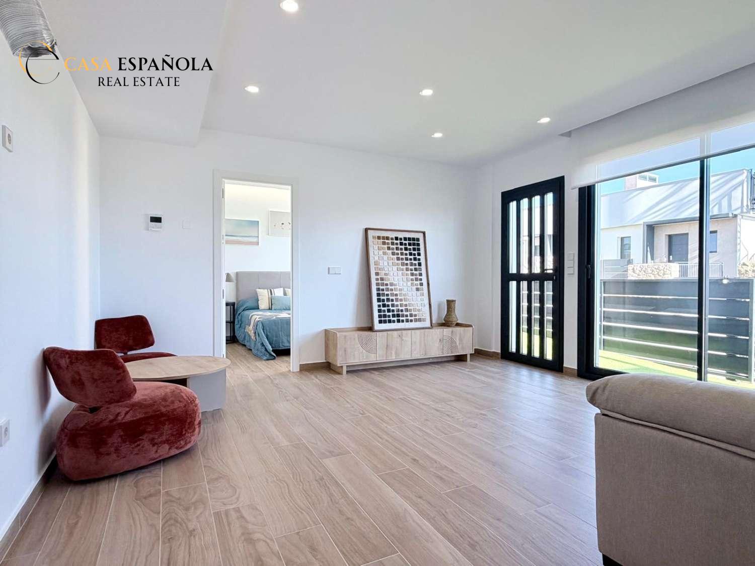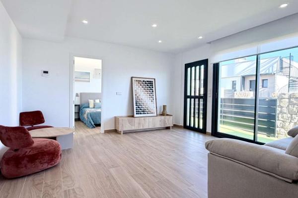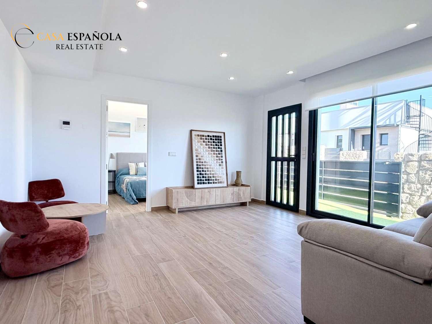 Each villa features its own private garden with swimming pool, outdoor terraces for dining and relaxation, and a rooftop solarium that allows residents to enjoy the sunny Costa Blanca climate throughout the entire year.