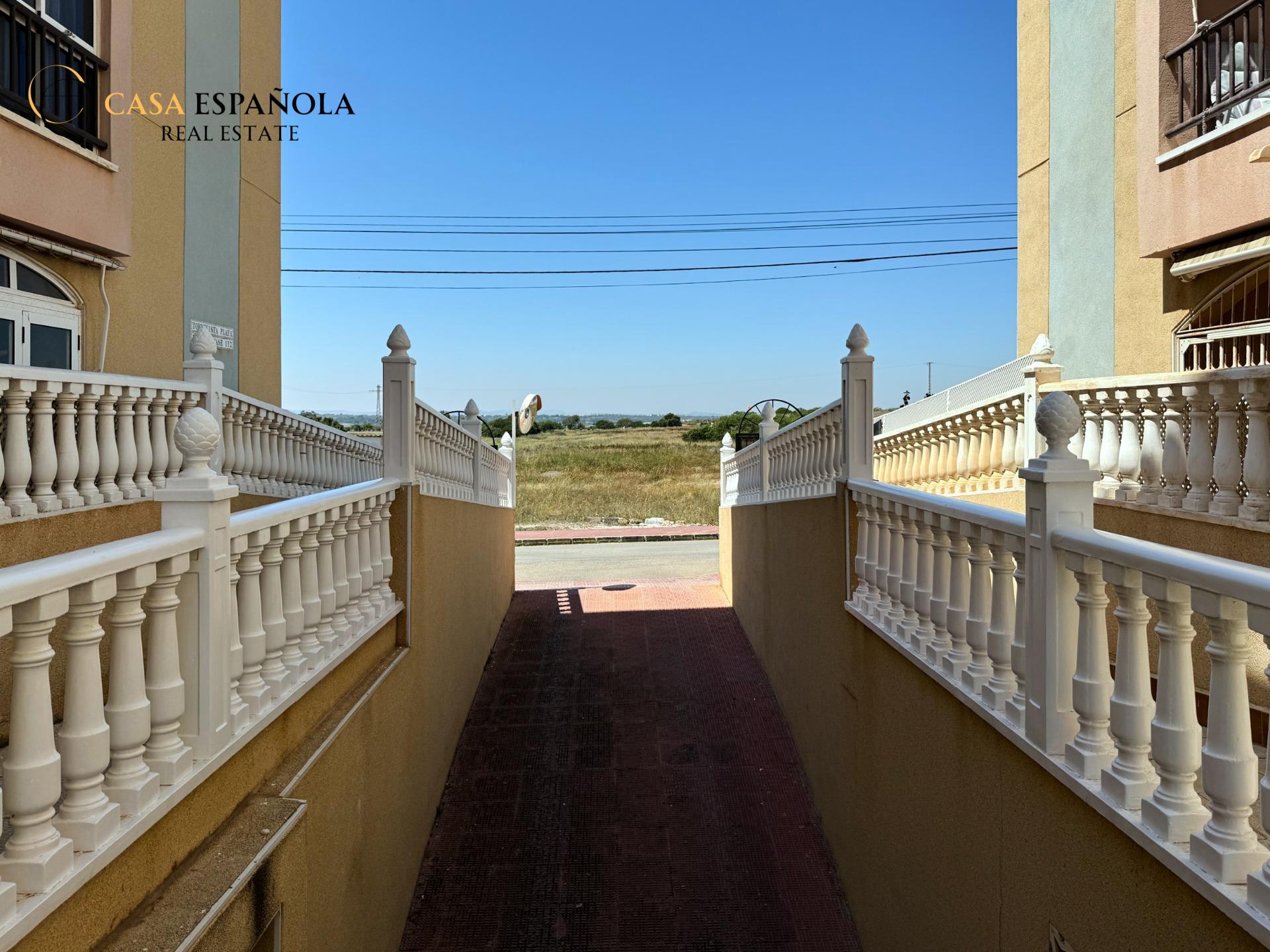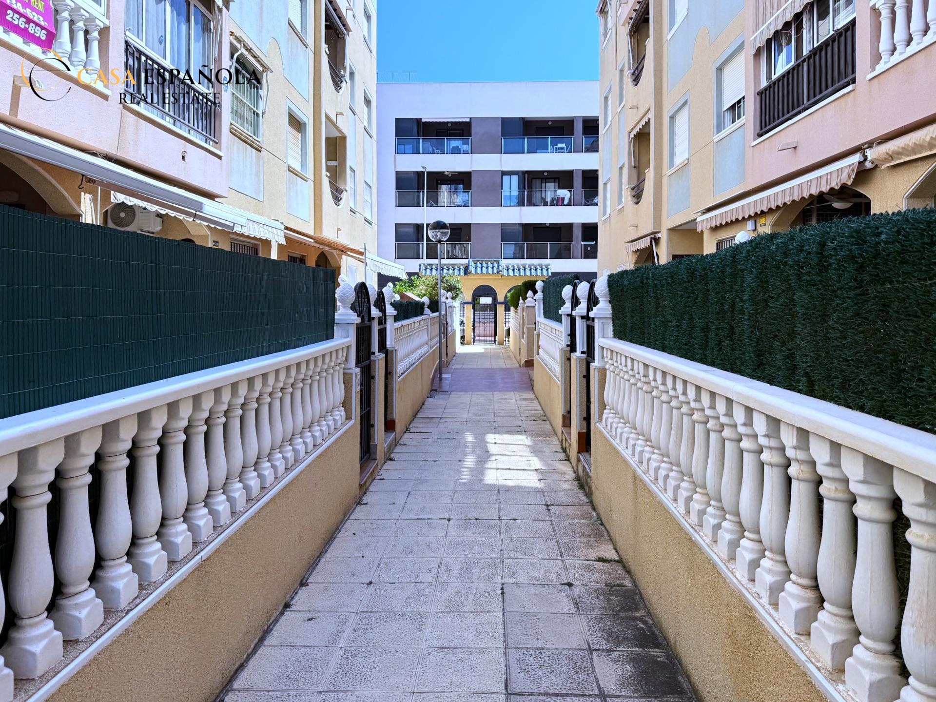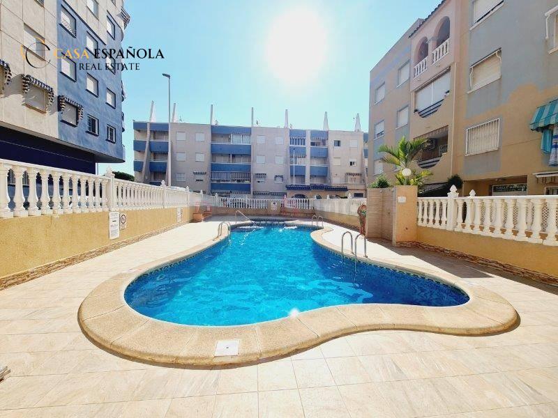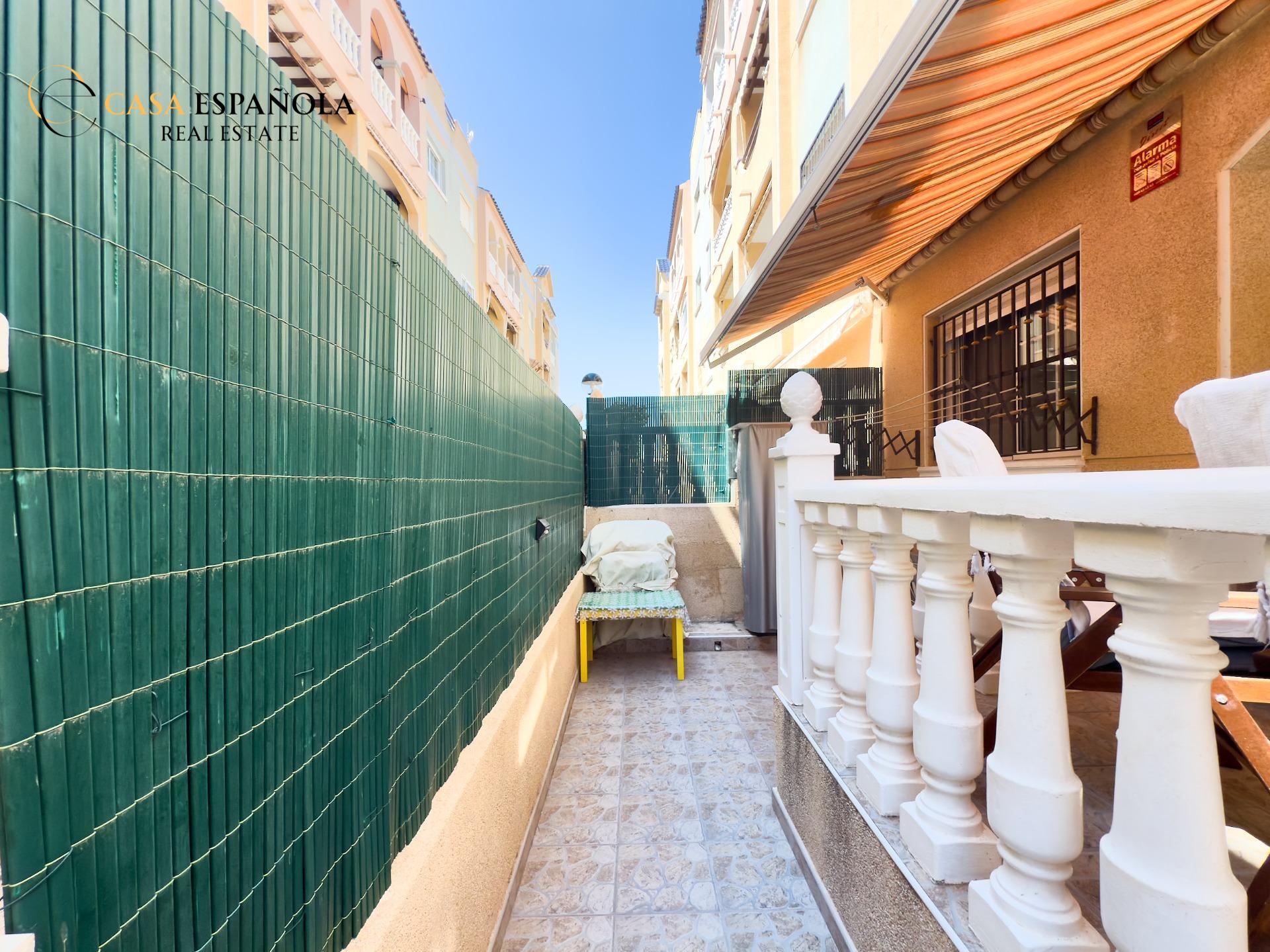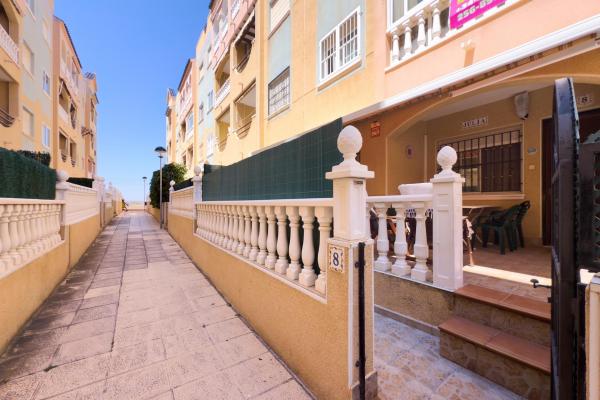 ¿Buscas comodidad, ubicación y un extra de espacio exterior? Este encantador bajo lo tiene todo. Situado en un residencial cerrado con piscina, a tan solo 100 metros de la playa de La Mata, disfrutarás del estilo de vida mediterráneo con todas las comodidades.~~La vivienda cuenta con dos dormitorios dobles, un baño completo con bañera y una cocina independiente con acceso directo a un amplio patio-terraza de aproximadamente 15 m2. Este espacio exterior no solo aporta ventilación y luz natural, sino que también es ideal como zona de relax, comedor de verano o incluso para almacenar.~~Se vende sin muebles, lo que te permite decorarlo a tu gusto desde cero. Incluye aire acondicionado por split en pared y un toldo instalado para protegerte del sol durante los días más calurosos.~~Una oportunidad ideal tanto para vivir todo el año como para disfrutar de unas vacaciones junto al mar. ¡Ven a visitarlo y déjate enamorar por su ubicación y potencial!