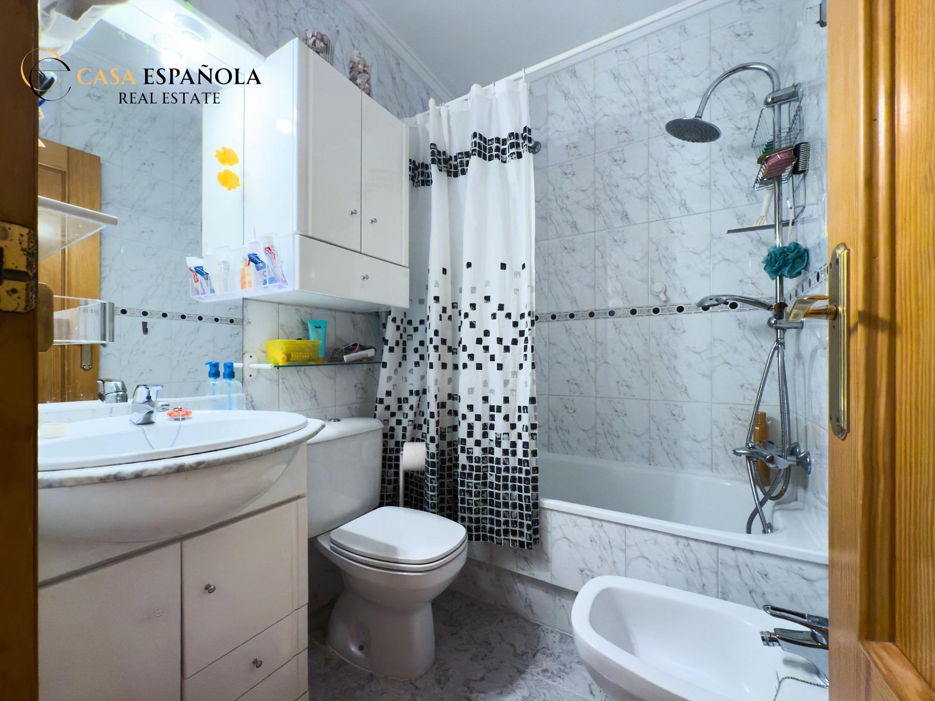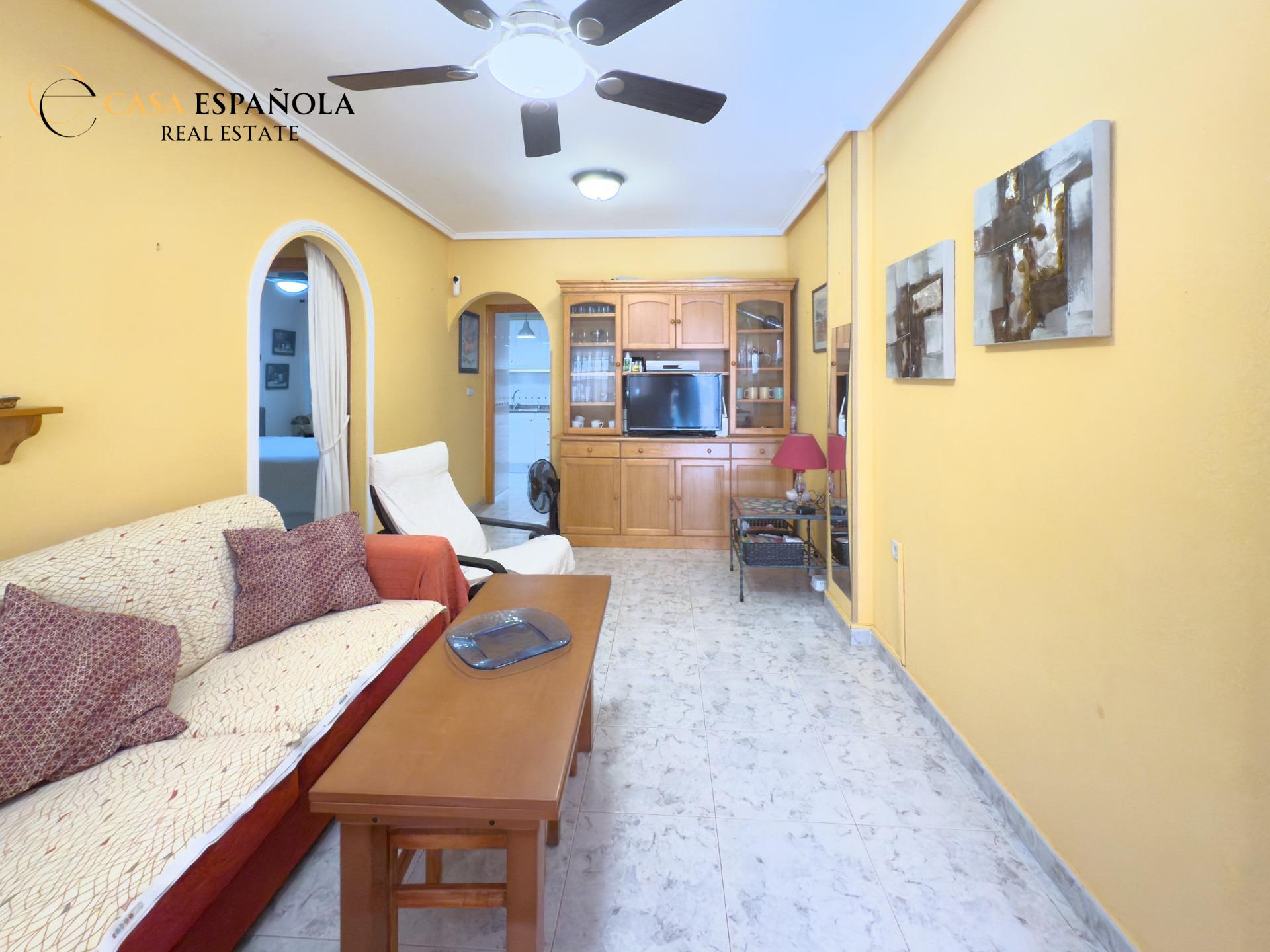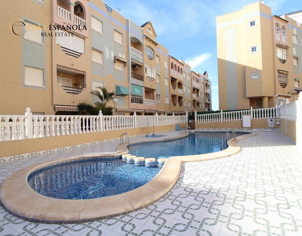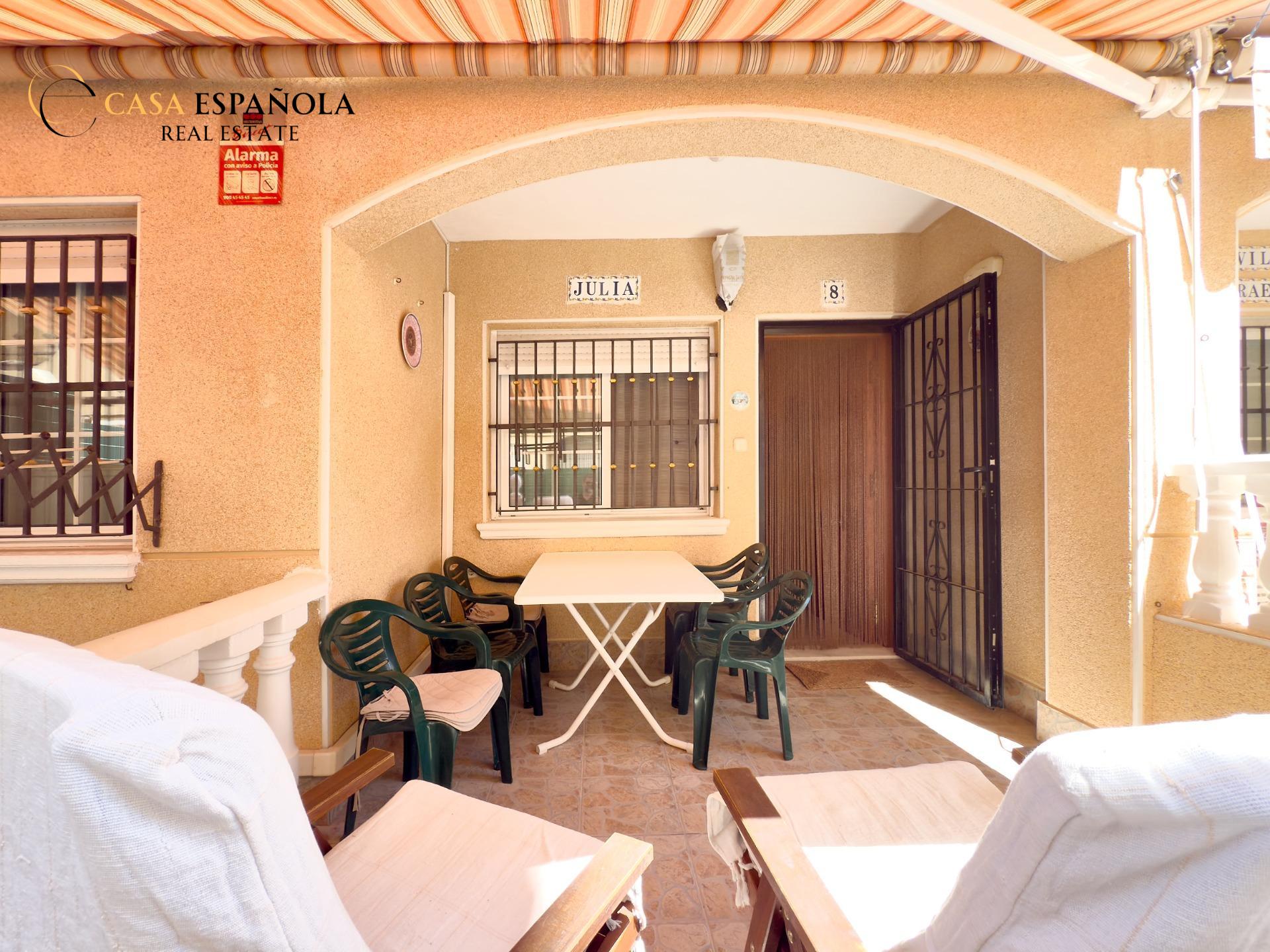 ¿Buscas comodidad, ubicación y un extra de espacio exterior? Este encantador bajo lo tiene todo. Situado en un residencial cerrado con piscina, a tan solo 100 metros de la playa de La Mata, disfrutarás del estilo de vida mediterráneo con todas las comodidades.~~La vivienda cuenta con dos dormitorios dobles, un baño completo con bañera y una cocina independiente con acceso directo a un amplio patio-terraza de aproximadamente 15 m2. Este espacio exterior no solo aporta ventilación y luz natural, sino que también es ideal como zona de relax, comedor de verano o incluso para almacenar.~~Se vende sin muebles, lo que te permite decorarlo a tu gusto desde cero. Incluye aire acondicionado por split en pared y un toldo instalado para protegerte del sol durante los días más calurosos.~~Una oportunidad ideal tanto para vivir todo el año como para disfrutar de unas vacaciones junto al mar. ¡Ven a visitarlo y déjate enamorar por su ubicación y potencial!
