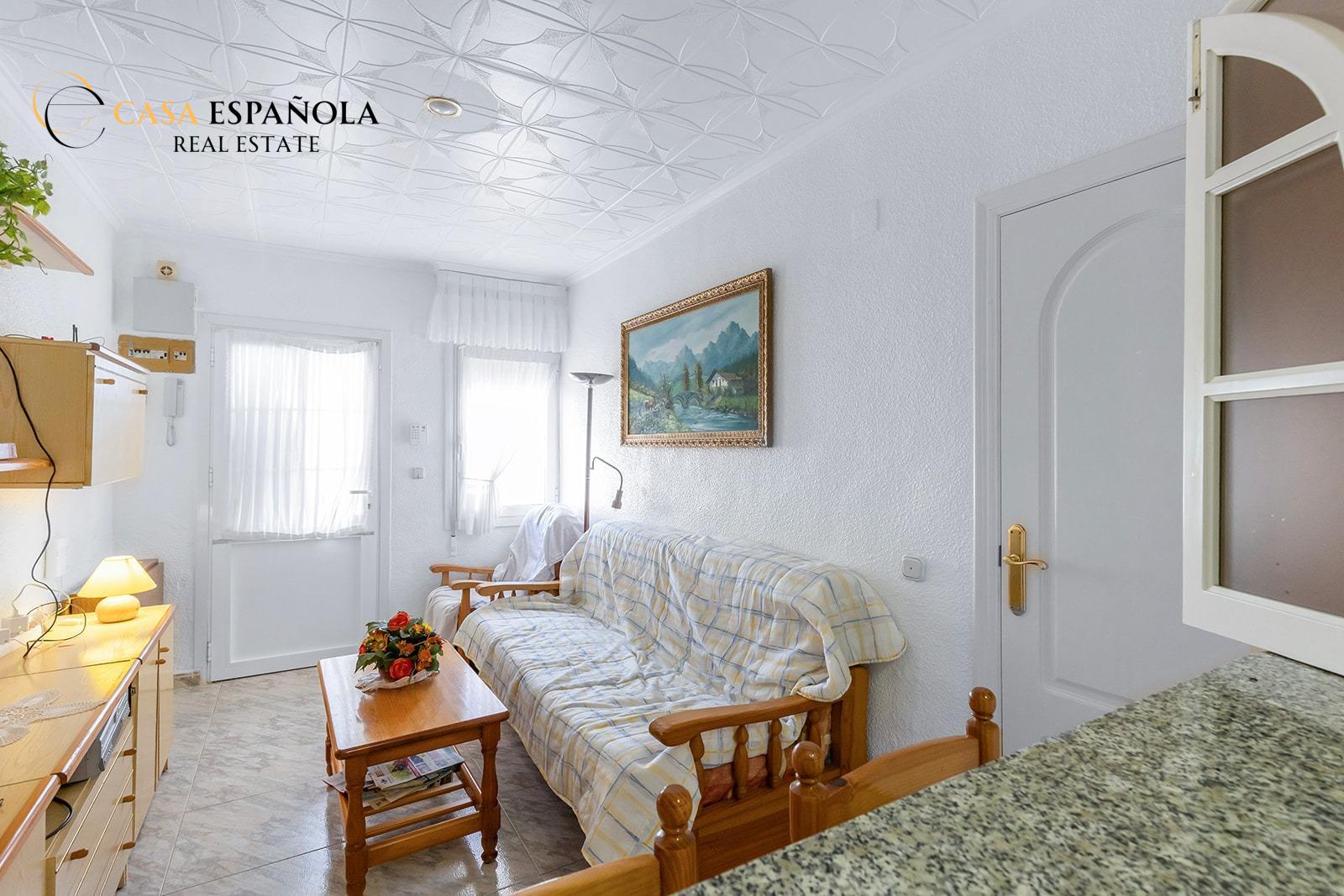Mooi rijtjeshuis op de begane grond, zonder bovenburen, gelegen in de rustige urbanisatie La Torreta III, op slechts 2.000 meter van het winkelcentrum Habaneras. ~De woning heeft twee slaapkamers, een badkamer, een lichte woonkamer met volledig uitgeruste open keuken en een praktische galerij. ~Buiten heeft het een enorm privéterrein van ongeveer 28 m2 dat zeer zonnig is, met een overkapping om voertuigen te beschermen, een barbecueplaats en een douche, perfect om het hele jaar door van het buitenleven te genieten. ~De omgeving biedt rust en een mooi uitzicht op de natuur, waardoor het een ideale omgeving is om het hele jaar door te wonen of om van een vakantie te genieten. ~Het wordt volledig gemeubileerd en uitgerust verkocht en verkeert in goede staat, klaar om te betrekken. Er zijn geen gemeenschappelijke kosten.